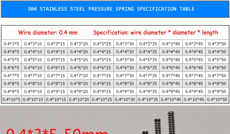 Пружина сжатия из нержавеющей стали, диаметр 0,4 мм, 10 шт.