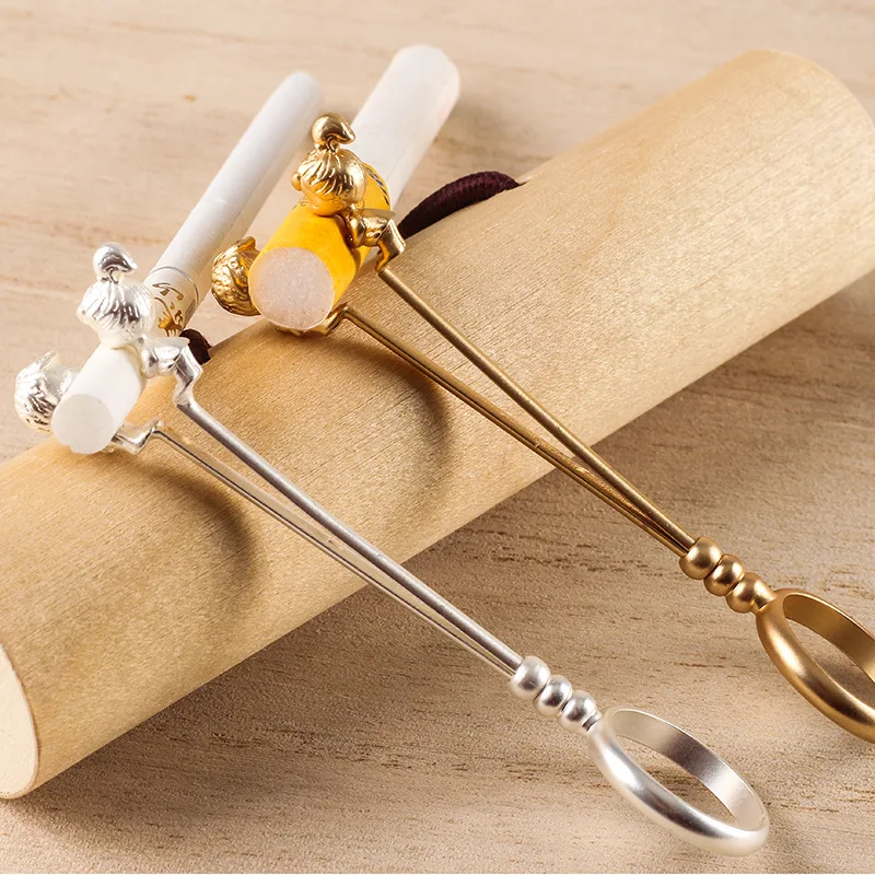 1 шт. Ретро Держатель для сигарет, кольцо-стойка, латунный зажим для пальцев для женщин и мужчин, тонкие аксессуары для сигарет и курения, Длинные стержни, ювелирные изделия золотистого цвета