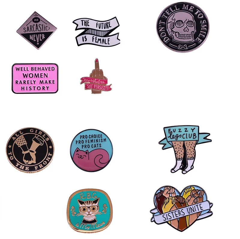 Эмалированные броши в форме феминистской шпильки, феминистская моти...