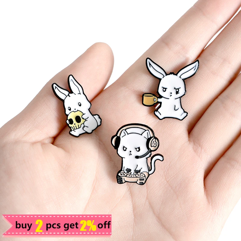 Эмалированная брошь в виде кролика саркастического под заказ, броши...