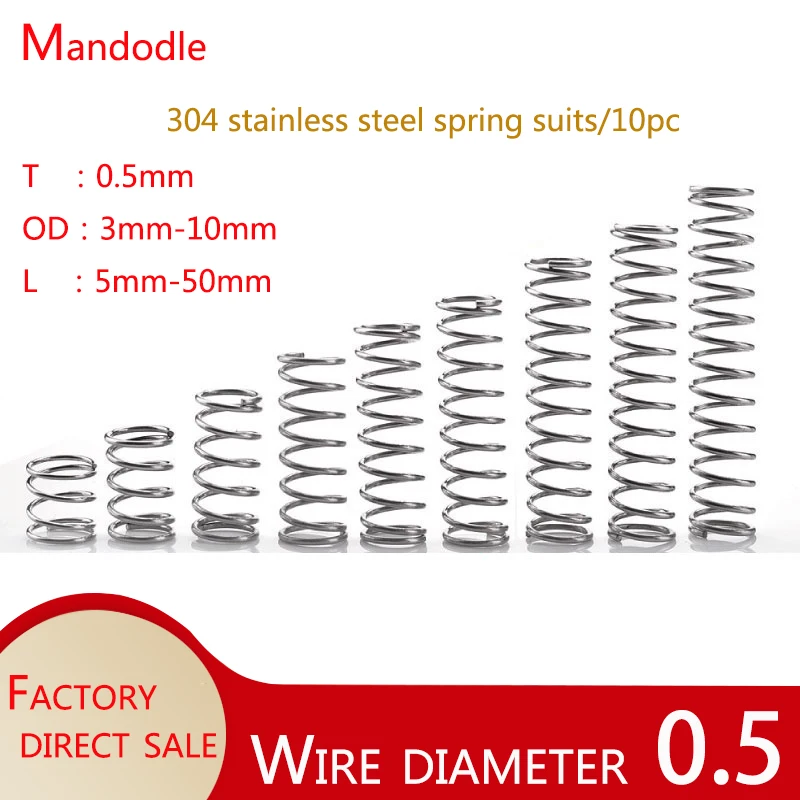 Пружина сжатия из нержавеющей стали 304, диаметр проволоки 0,5, возвратная пружина, наружная diameter3-10mm,10 шт.