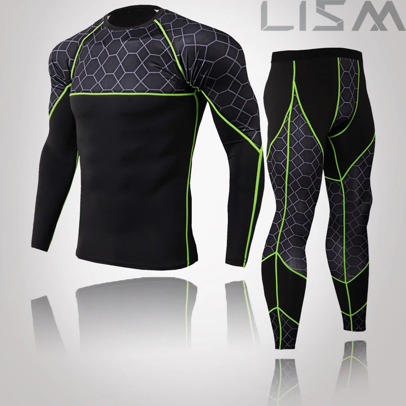 Мужской компрессионный спортивный костюм, футболка с длинным рукаво...