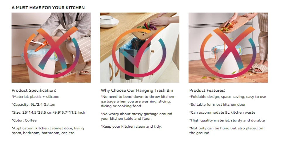 Складная мусорная корзина подвесная корзина для мусора, складная, легкая уборка, для помещений, кухни, компоста, ведро под столешницей, раковина