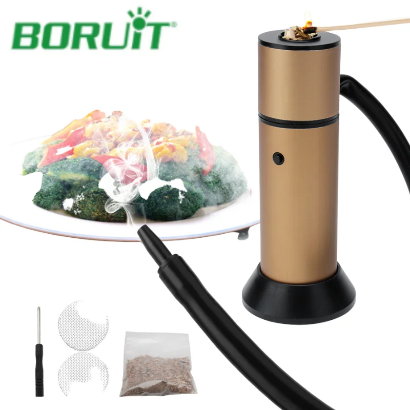 Пистолет для курения еды является идеальным компаньоном для творчества и презентаций на кухне или в домашнем баре. Наполняйте свою еду классическими ароматами, такими как Хикори или эпплвуд, или с креативными вкусами, такими как чаи, специи или сушеные цветы.Вы можете легко изготовить изысканную молекулярную кухню дома. Курительная пушка быстро делает курение различными типами древесных чипсов, чая, трав, специй, сена, сухоцветов. Для добавления холодного дыма и аромата в еду или напитки требуется всего 3-5 минут.Компактная инфузионная система делает ее достаточно мягкой для использования на пище без изменения текстуры или температуры.Прост в использовании. 2xAA батарея работает в любом месте (батареи не включены в посылка). Сборка или разборка без инструментов. Легко чистить протрите или водой, но посудомоечной машине не рекомендуется. Портативный и легкий. Легко носить с собой в любом месте для барбекю, пикника, приготовления пищи.