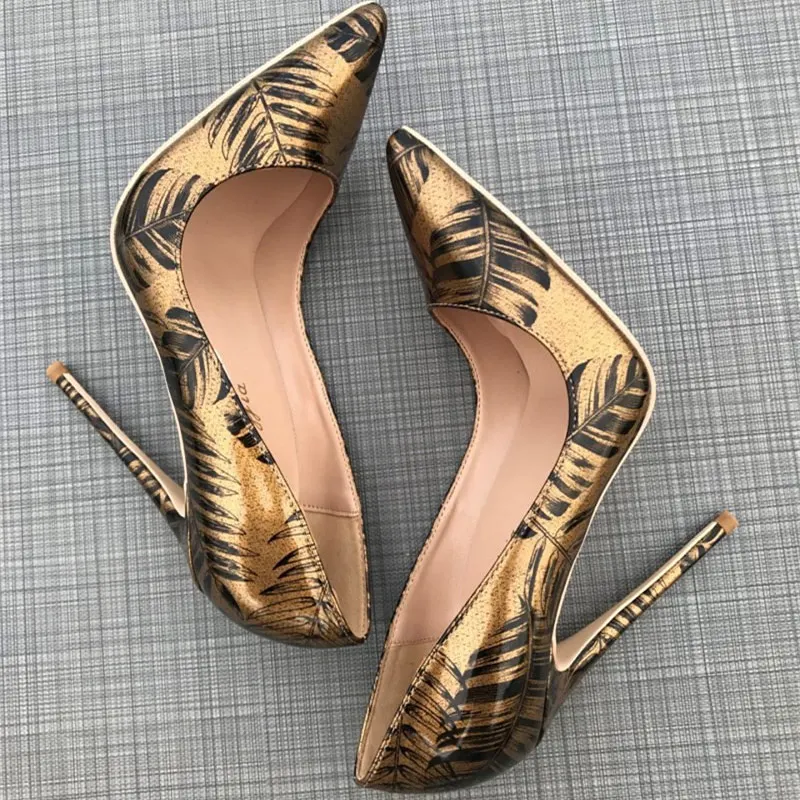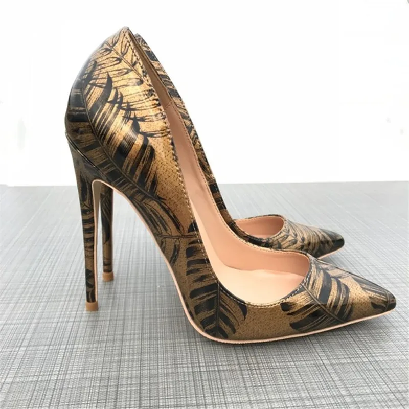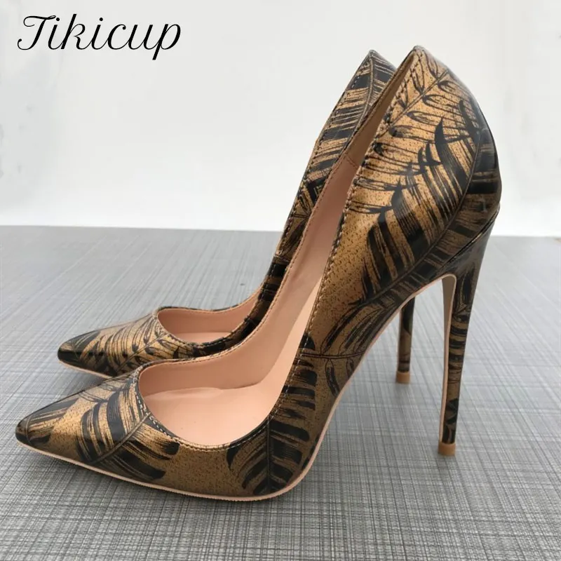 Женские лакированные туфли-лодочки Tikicup на высоком каблуке с золотым принтом и острым носком, женские привлекательные шикарные туфли на шпильке, модная обувь