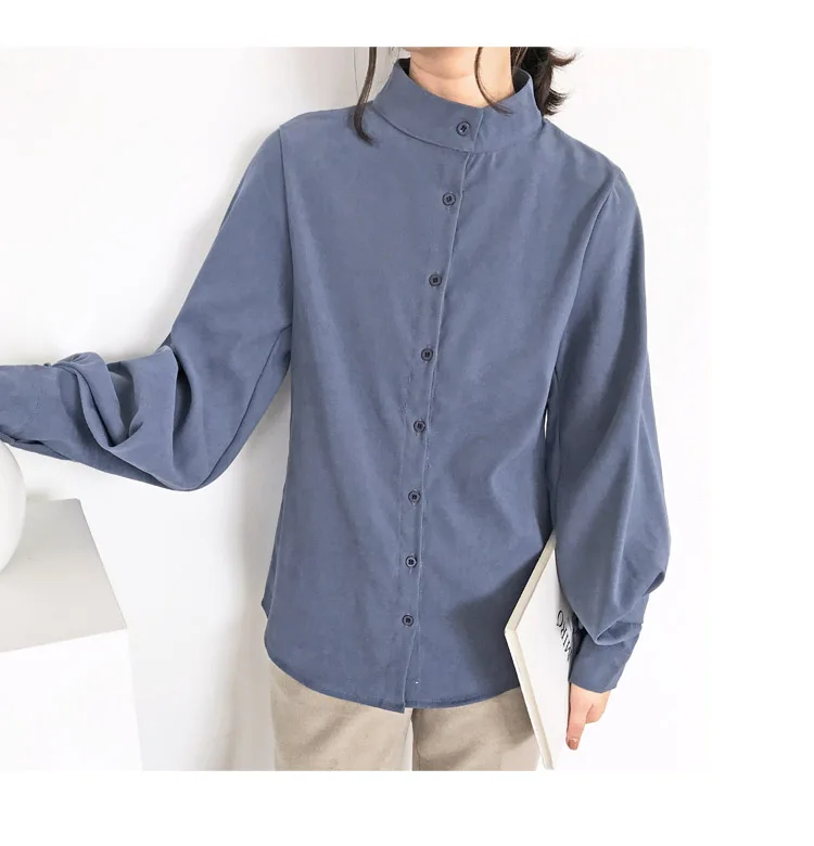 Jielur новый фонарь рукав блузки для женщин Весна 2021 однобортный стенд рубашка с воротником из органической кожи на каждый день в винтажном стиле Цвет Черный Блузка