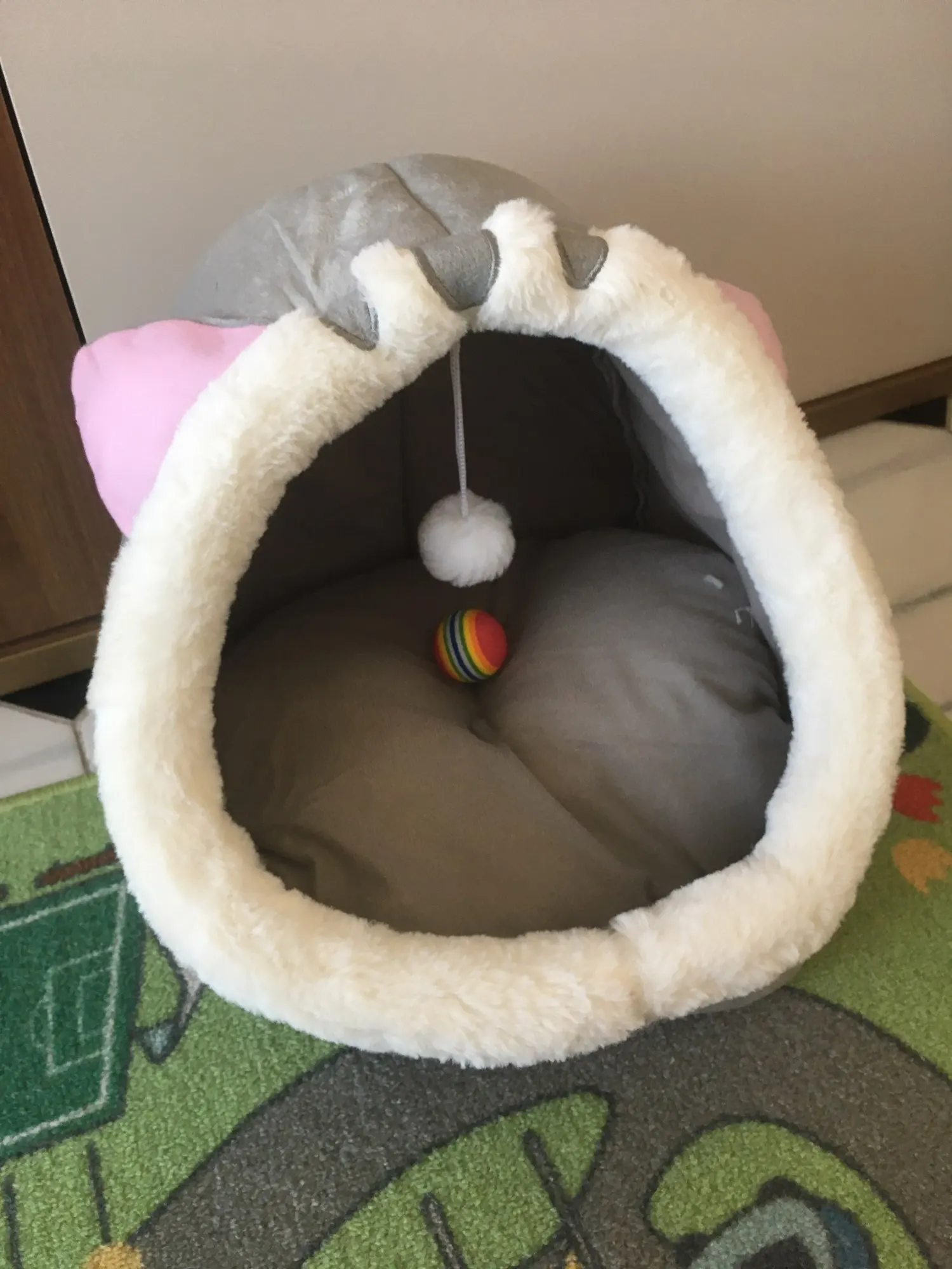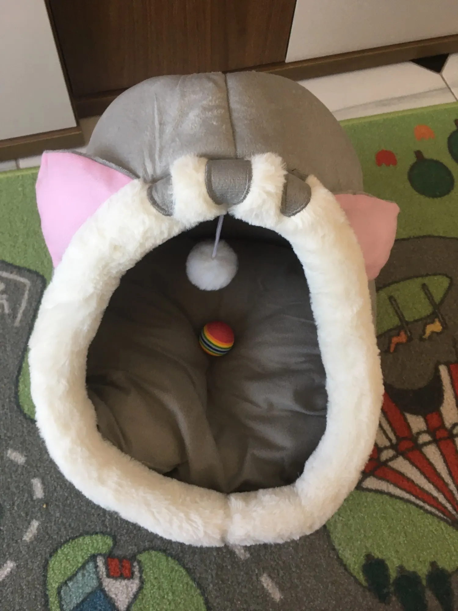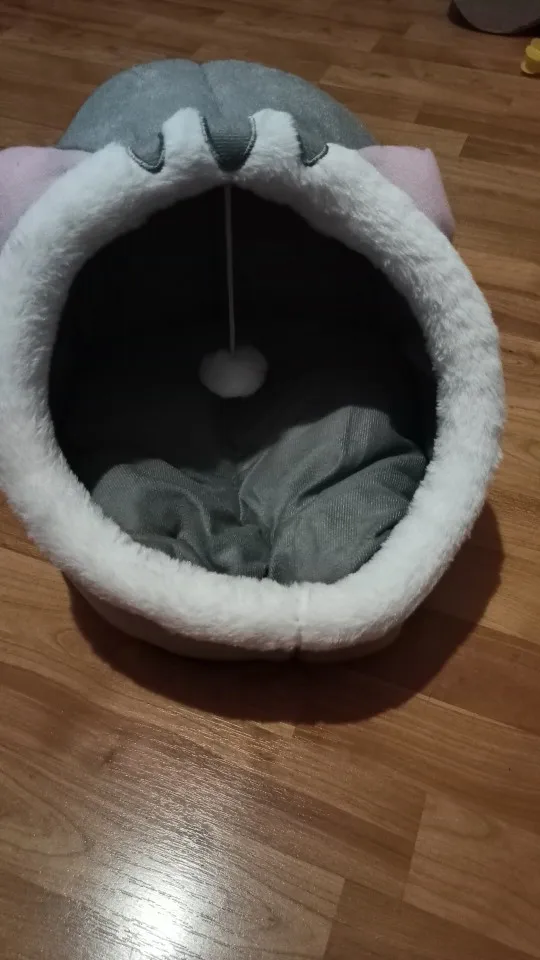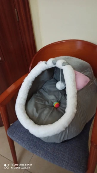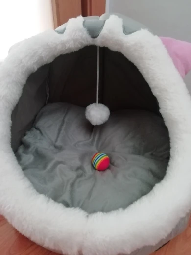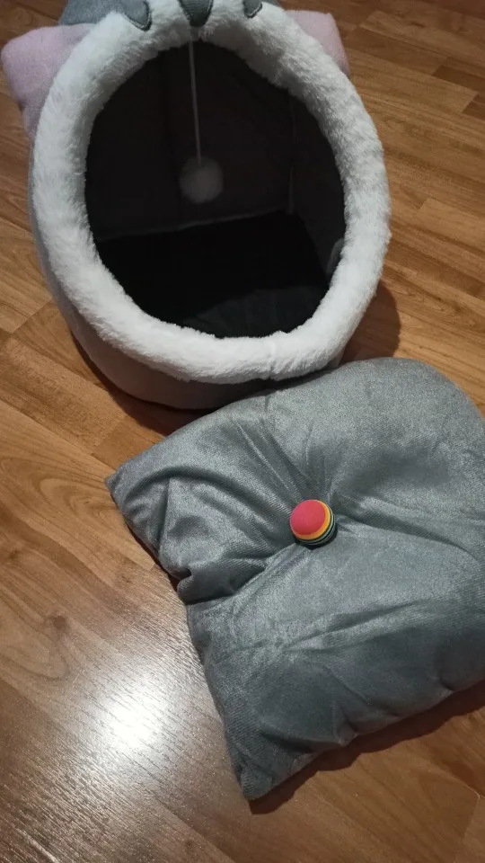 Очень мило и хорошего качества. У меня есть две маленькие кошки, и теперь, пока они подходят друг другу, размер М очень просторный. Подушка Мягкая, а мяч их любит.