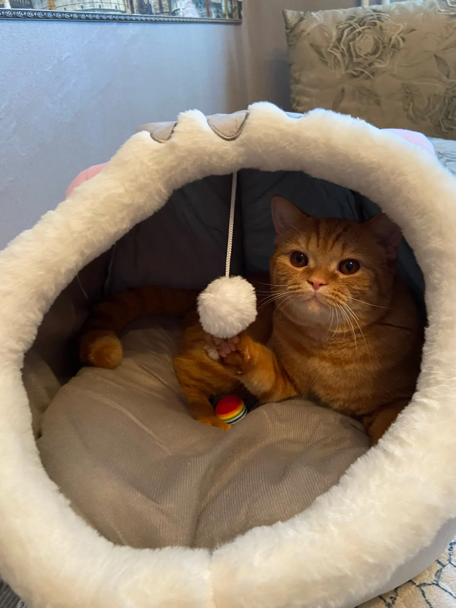 Хорошее качество кошки с забавным дизайном. Отличное качество/цена, как это видно на изображениях продавца. Кровать поставляется с подушкой, подвеской для игры и мячом отдельно. Быстрая доставка