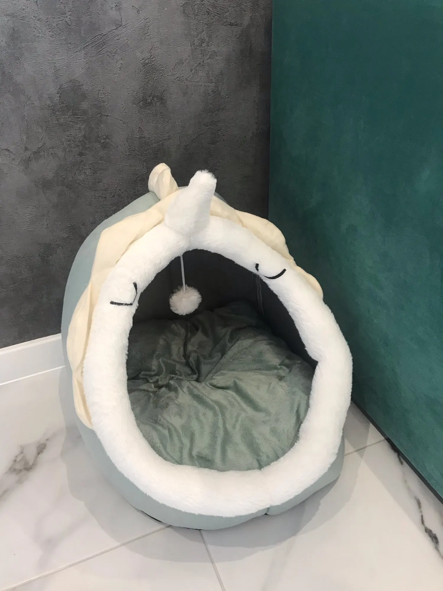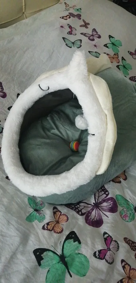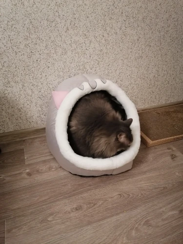 Прекрасный домик. Как на фото. Сначала подушку обернули личным кошкиным пледиком, чтобы пропитался её запахом. Сейчас тепло, она длинношёрстая, но всё равно иногда спит в нём. Домик очень тёплый. Для зимы, короткошёрстных и сфинксов будет идеально.))