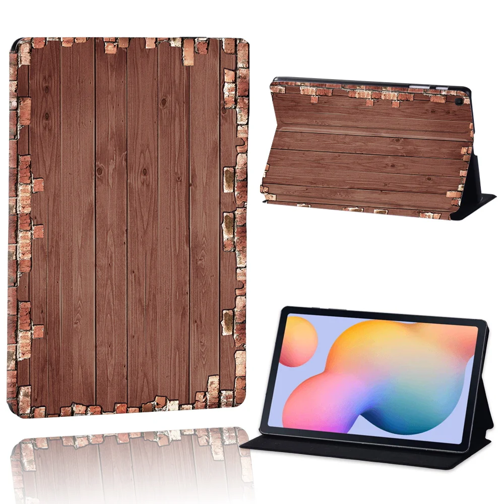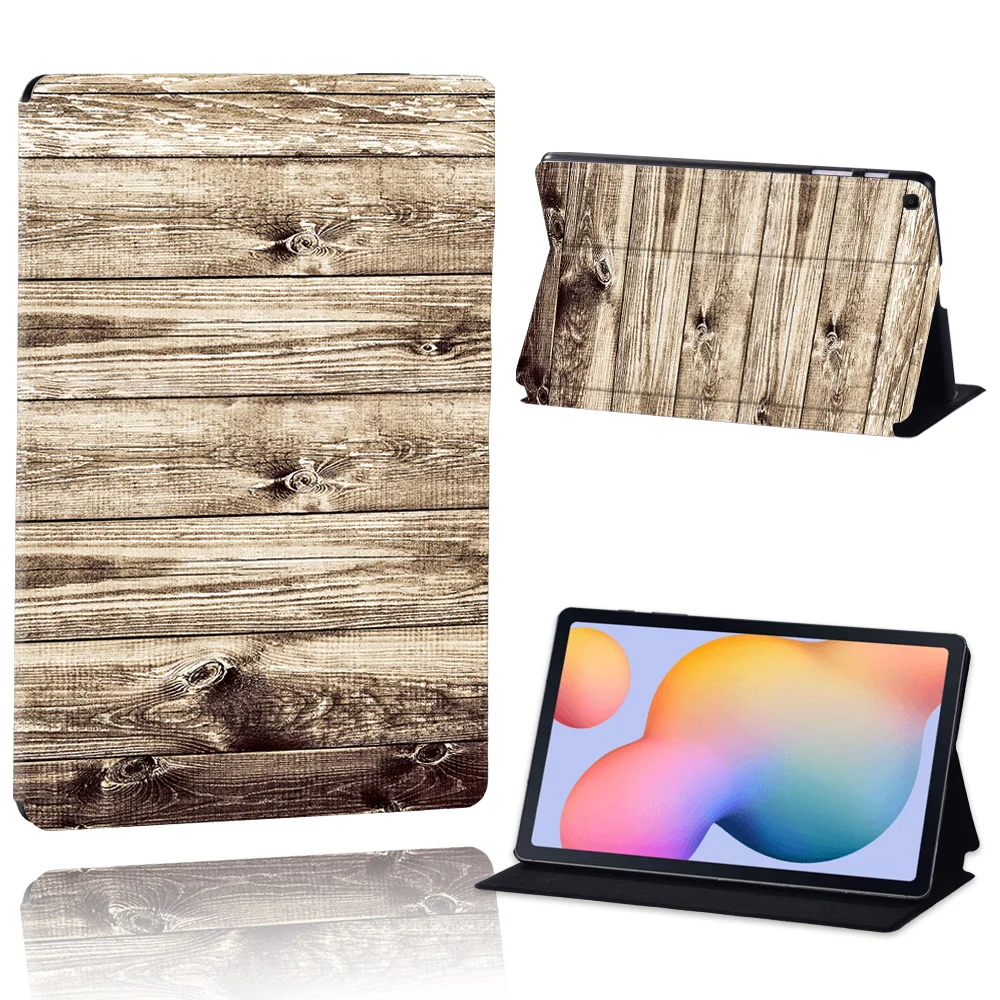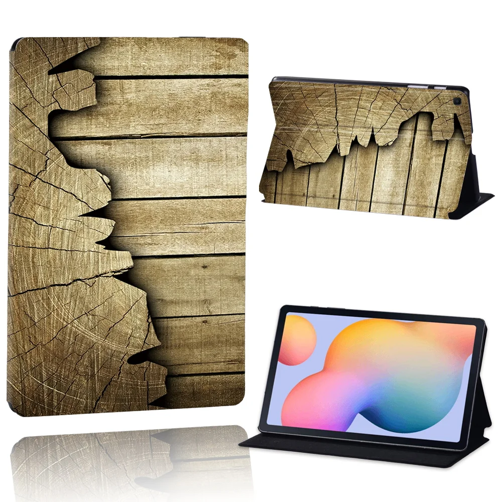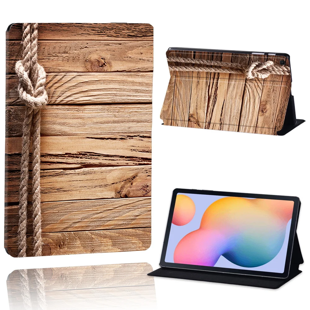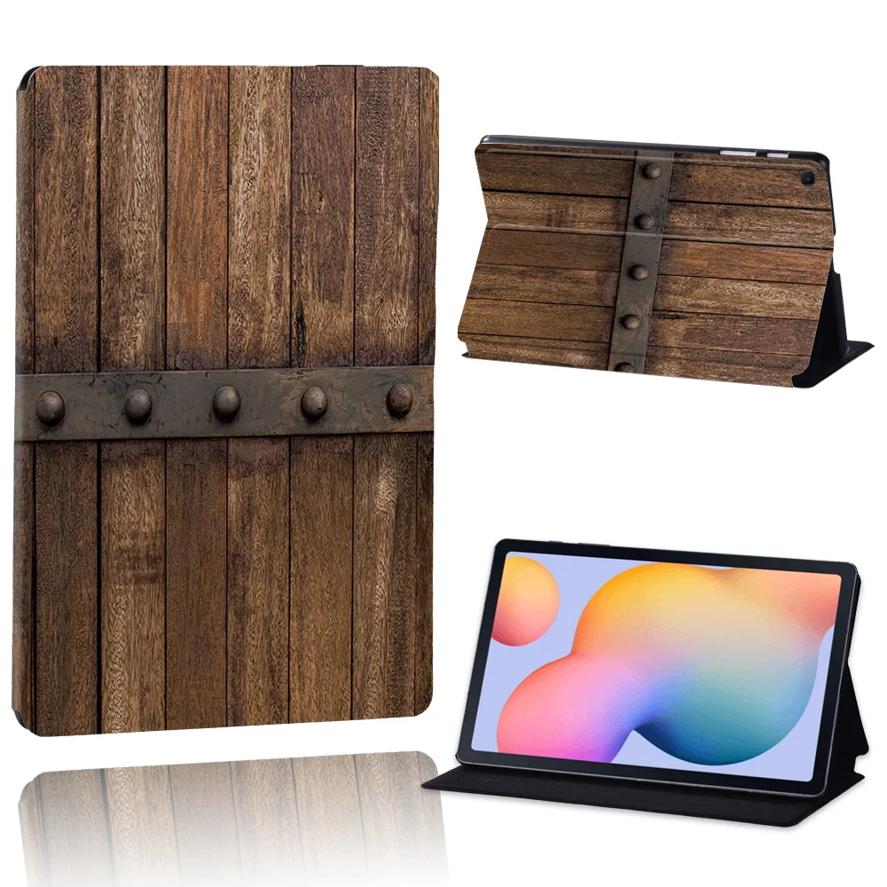 Чехол-подставка из кожи и дерева с принтом для Samsung Galaxy Tab A...