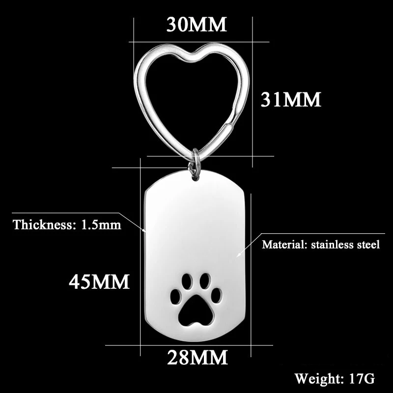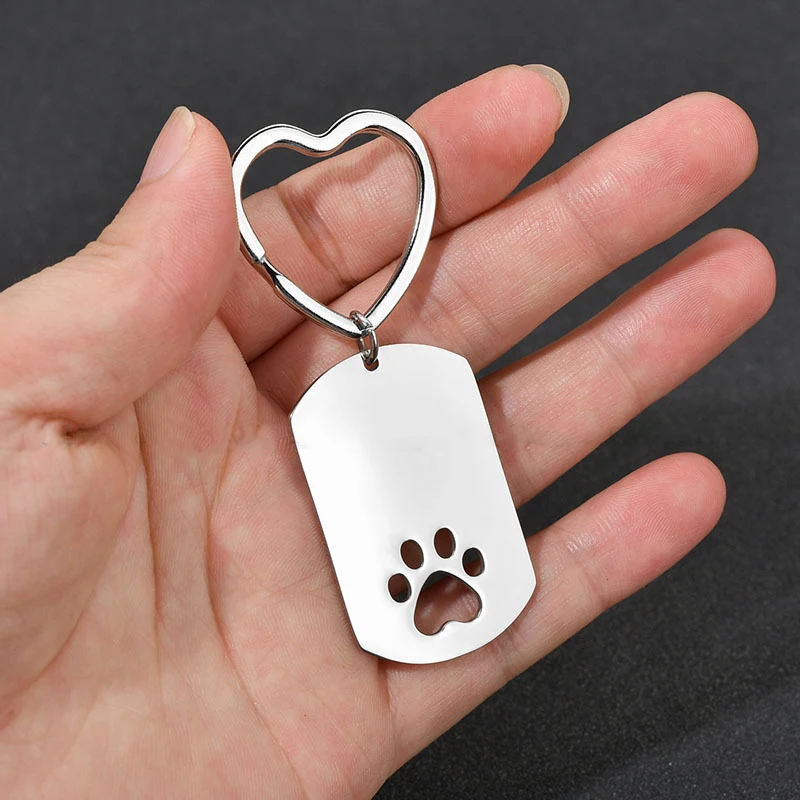 Полый брелок из нержавеющей стали в виде собачьей лапы, акриловый брелок для ключей, кольцо для гравировки, ювелирные аксессуары