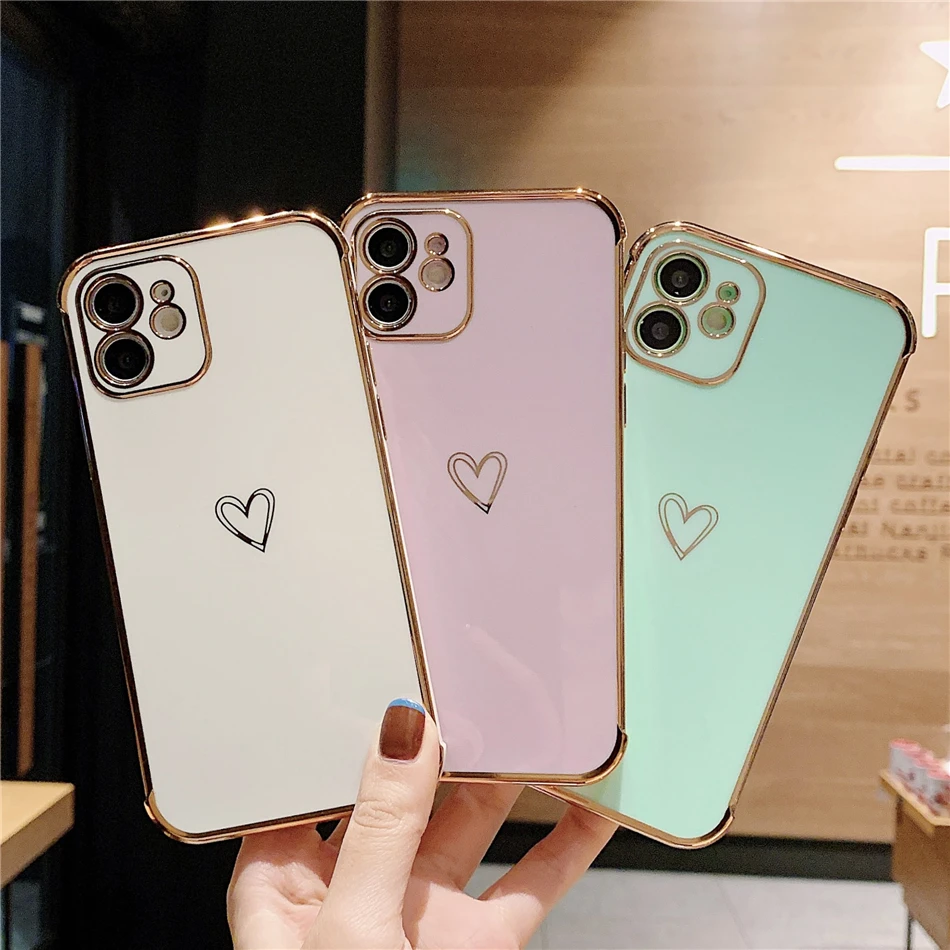 Чехол для телефона с гальваническим покрытием Love Heart для iPhone 12Pro 12 11 Pro Max XR XS X XS Max 7 8 Plus, противоударный защитный чехол из ТПУ