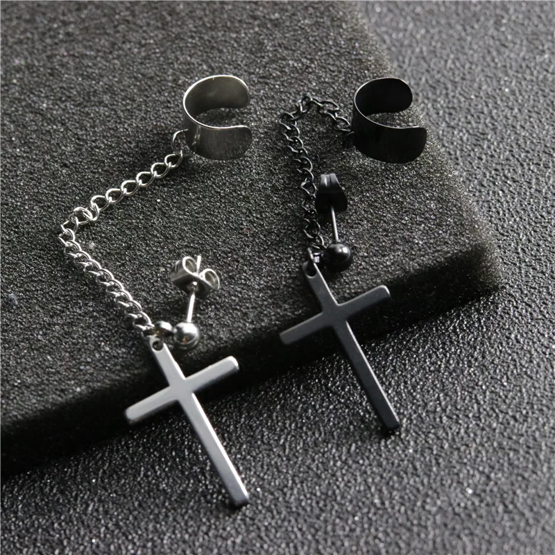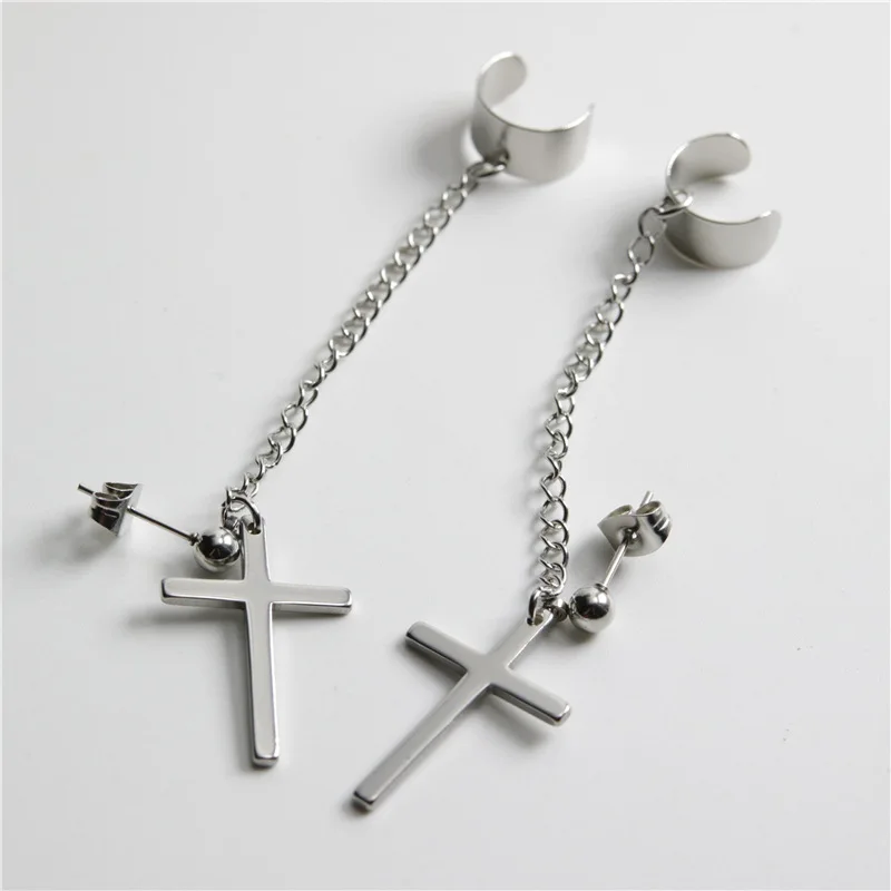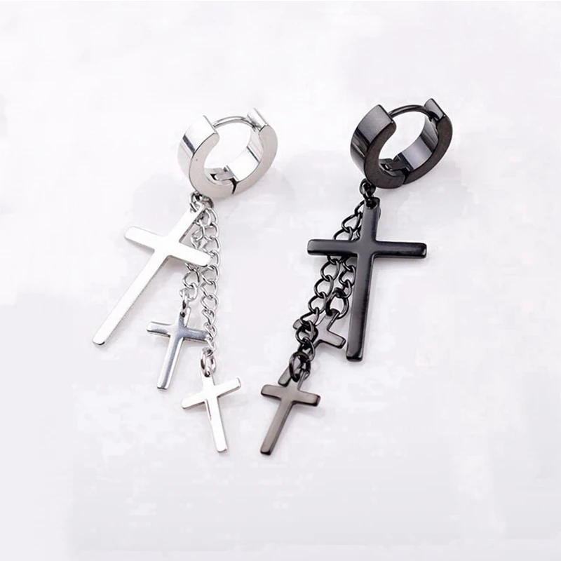 Женскиемужские серьги-кисточки из нержавеющей стали, с крестом, 1 шт.