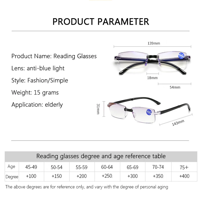 Посылка включает в себя: 1 шт. анти-синий светильник, складные очки для чтения и 1 шт. коробка для очков