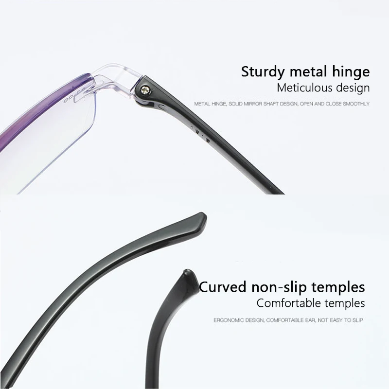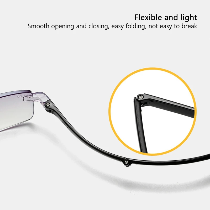 Очки для чтения TR90 Мужские Складные, очки с умным зумом, с алмазной огранкой и защитой от синего излучения, без оправы, в портативной коробке, черные