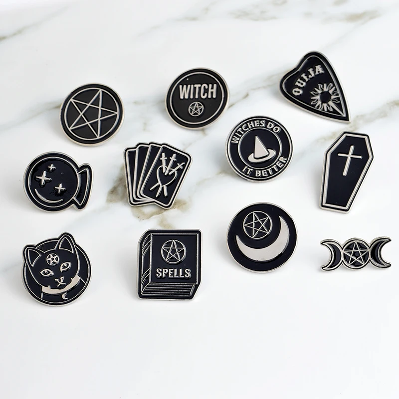 Эмалированная брошь в стиле панк, с изображением ведьмы, котенка, т...
