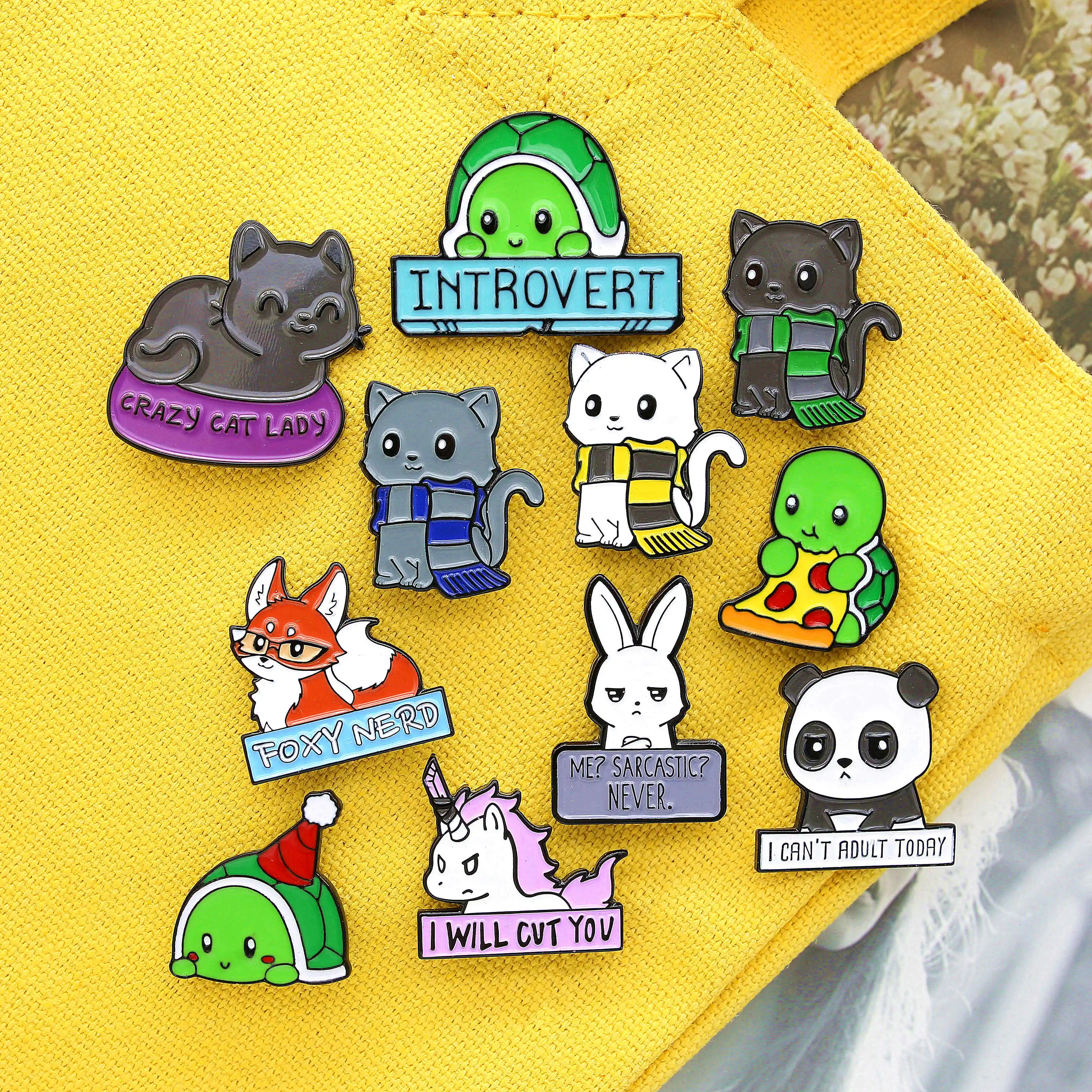Модная мультяшная круглая металлическая эмалированная брошь для пут...