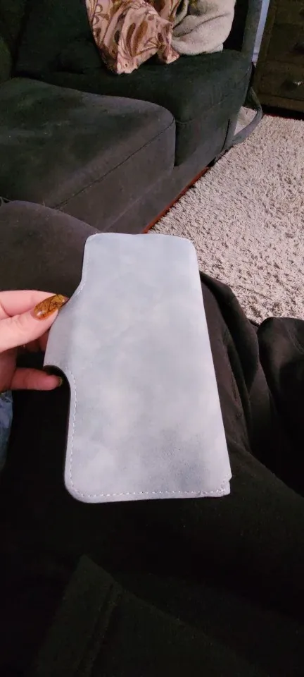 Материал немного тонкий, очень мягкий, нет картона между материалом, он немного больше, чем я думал только потому, что края швейных частей на нем, но все еще подходит в сумочке, не закрывает, если я вставлю в него свой телефон