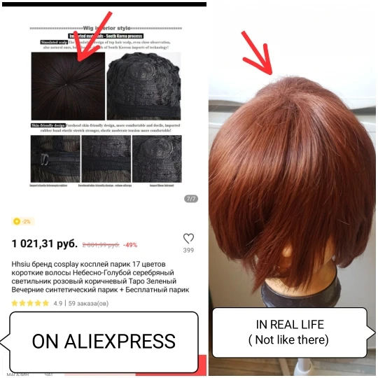 Ну, смотрите, ребята. Удивительно, но не рекомендую от слова совсем Что не так: 1. Прошив макушки вообще не такой, как в описании. Как вы знаете, есть два вида париков: одни с как бы лёгкой имитацией кожи на макушке и ровными рядами волос. А другие - как этот монстр. Когда просто сверху как-то клеют волосы и получается эта параша. Зачем обманывать - непонятно, но для меня это был принципиальный вопрос; 2. Парик имеет очень странную длину волос. Вообще ничего даже около близкого как на фото с алика (сами посмотрите); 3. Самый смак в том, что парик вообще приехал бракованным. Весь в волдырях и это никак не исправить Однако, продавцу плевать и он не хочет видеть очевидный брак, ребята)))))) И это 4 проблема данного товара. Мне пришлось буквально доказывать, что он испорчен, хотя это блин очевидно. Но продавец упëрся и я еле выбила 500 рублей обратно. Найдите себе, в общем, вариант получше. Есть дешевле и качественнее