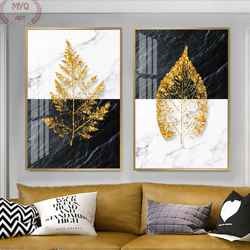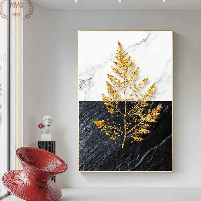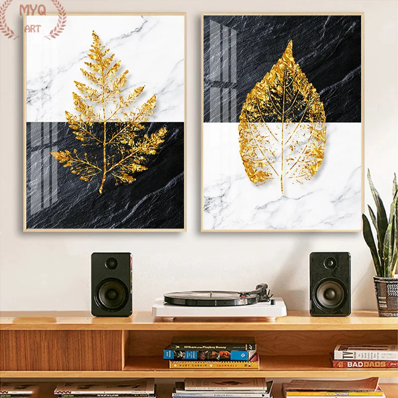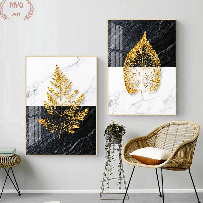 Абстрактный постер в скандинавском стиле с изображением золотых растений и листьев, настенная живопись, декоративная картина для гостиной, домашний декор