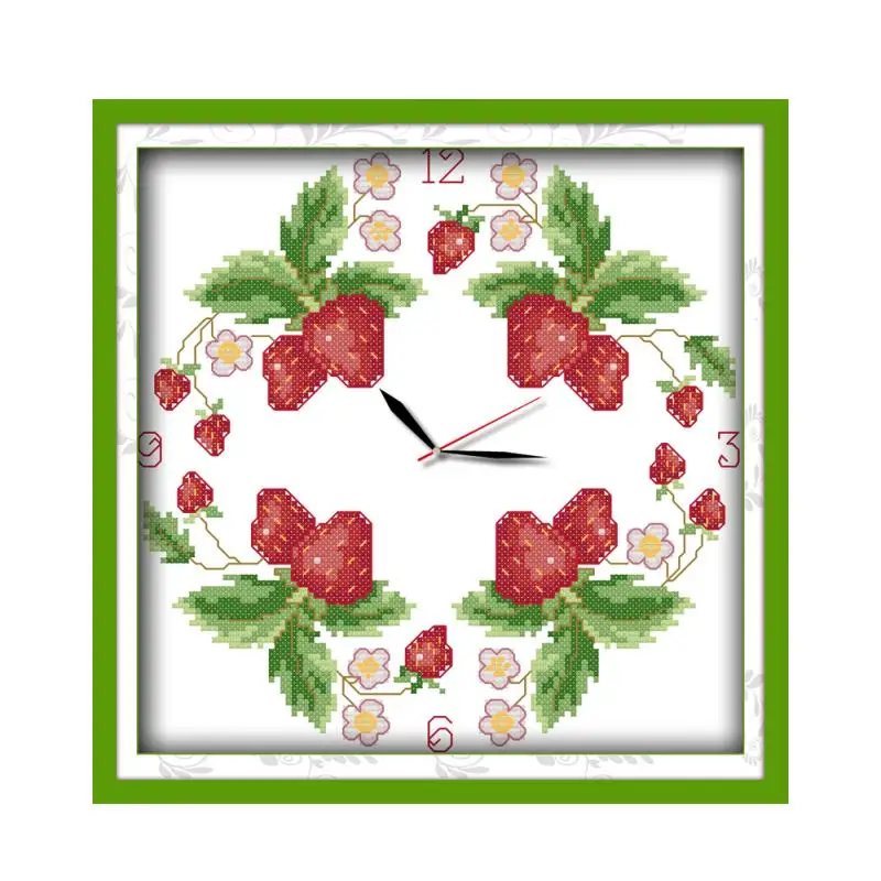 Привлекательные часы с клубникой, наборы для вышивки крестиком, вышивка 11CT 14CT, печать, рукоделие, штампованный декор, ручная работа, подарочный набор