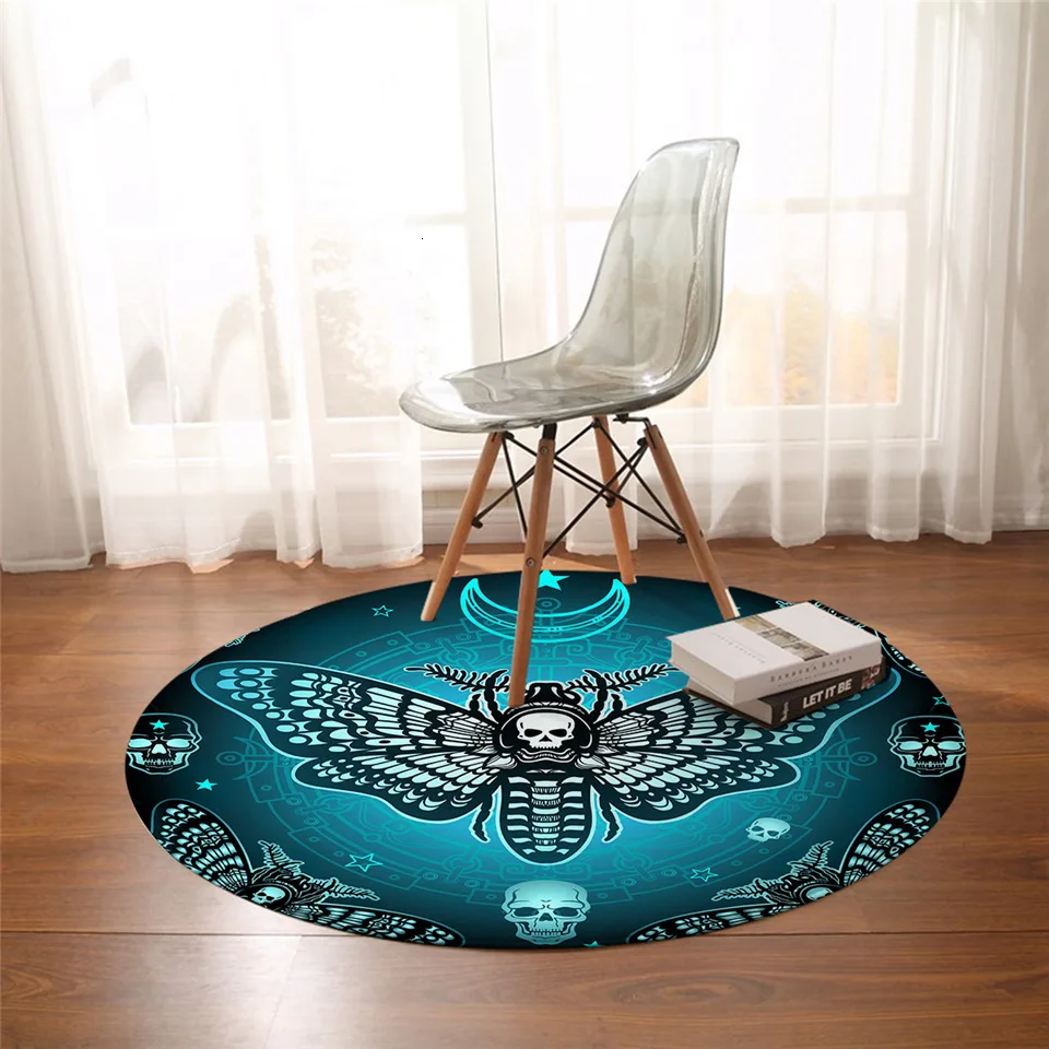 Круглый коврик Death Moth, готический Коврик для пола с черепом, Ба...