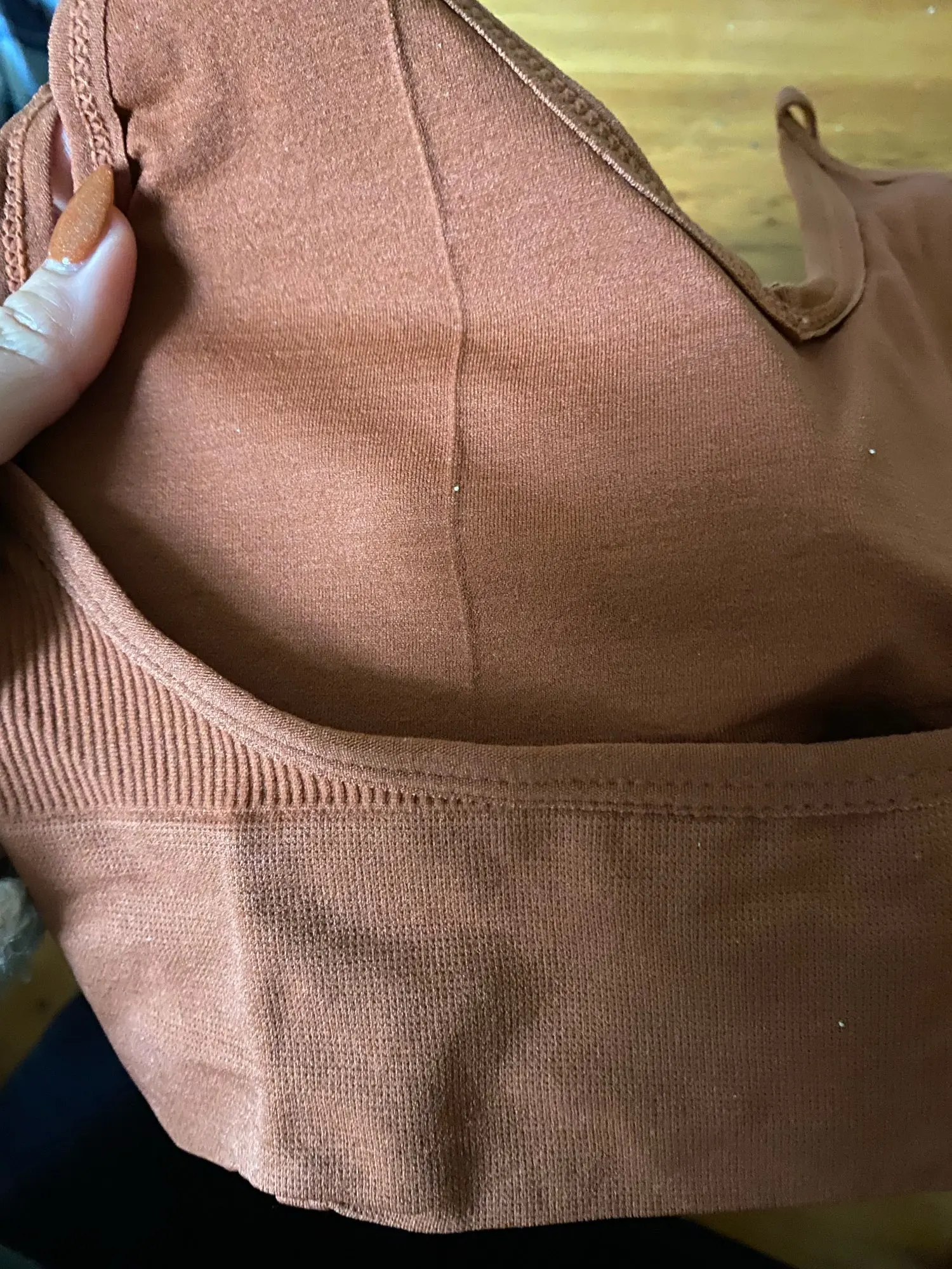 Дата заказа 23.02-20.03 дата доставки в мой пункт выдачи. Топ чёрного цвета, очень хорошо тянется, поначалу показалось мал на мой 46 размер, грудь 83, но нет отлично сел. Чашечки вынимаются, мягкий анатомически сделанный паралон, при этом лёгкий и дышащий. Ношу уже 2-й день. После стирки не полинял, быстро высох. Рекомендую!❤️