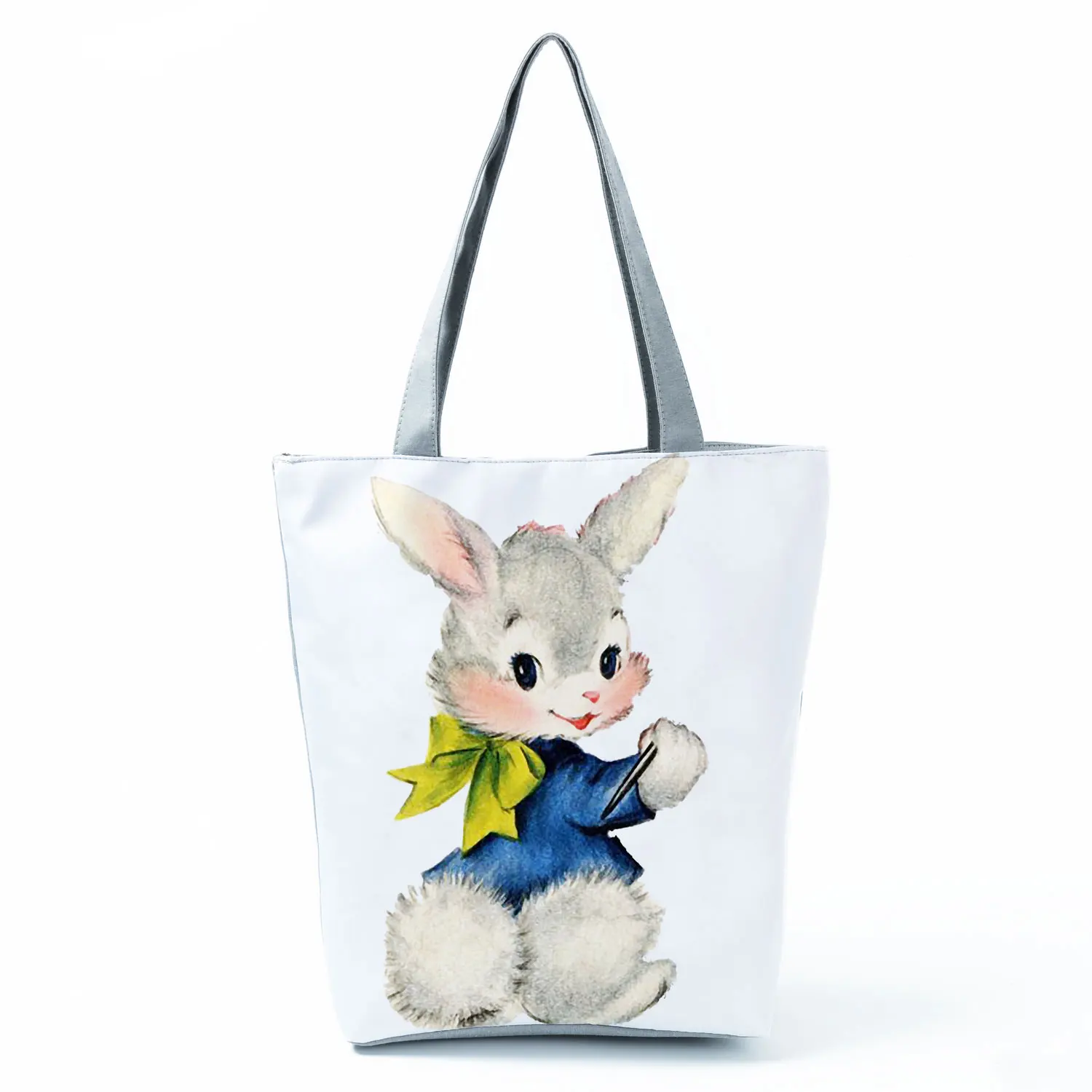 Сумка-тоут с мультяшными милыми животными для девочек, маленькая сумка через плечо с кроликом, Женская вместительная универсальная сумка-шоппер с индивидуальным рисунком