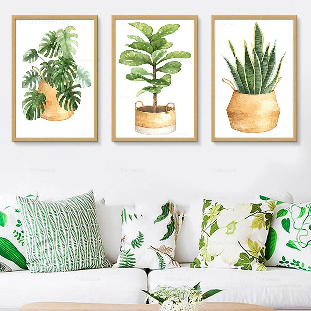 Плакаты с кактусами и зеленью, растительные монстеры, листья, холст, живопись, дом, растение, настенные картины для гостиной, украшение для дома