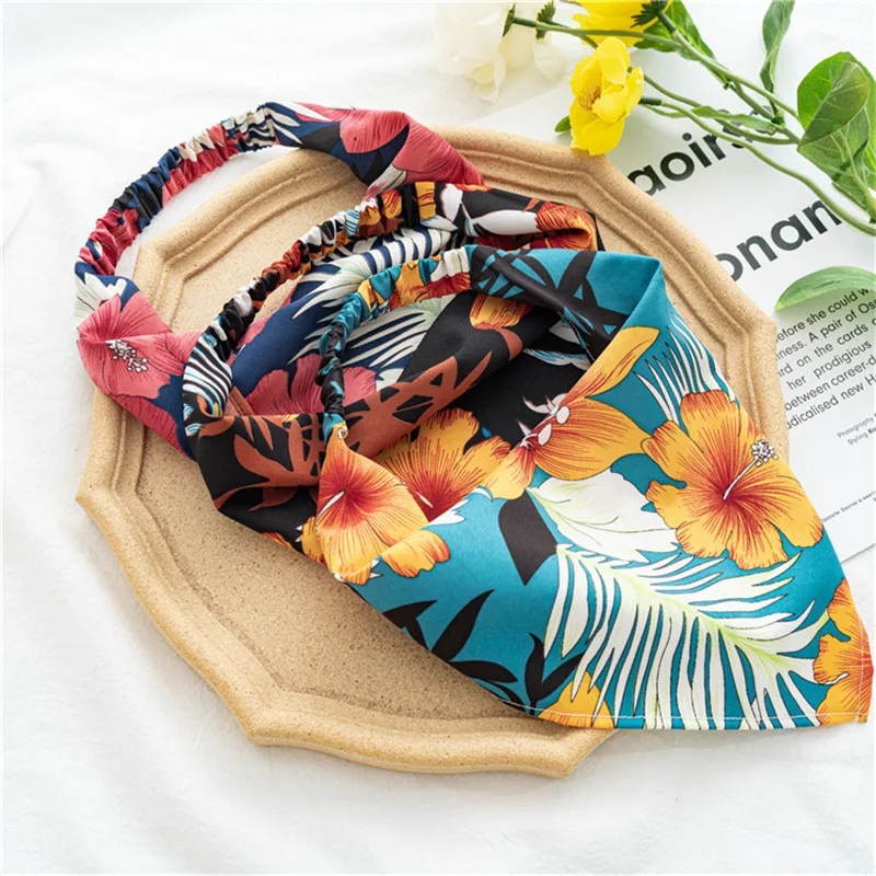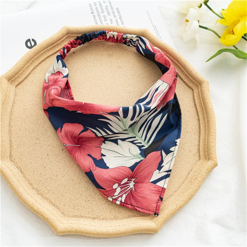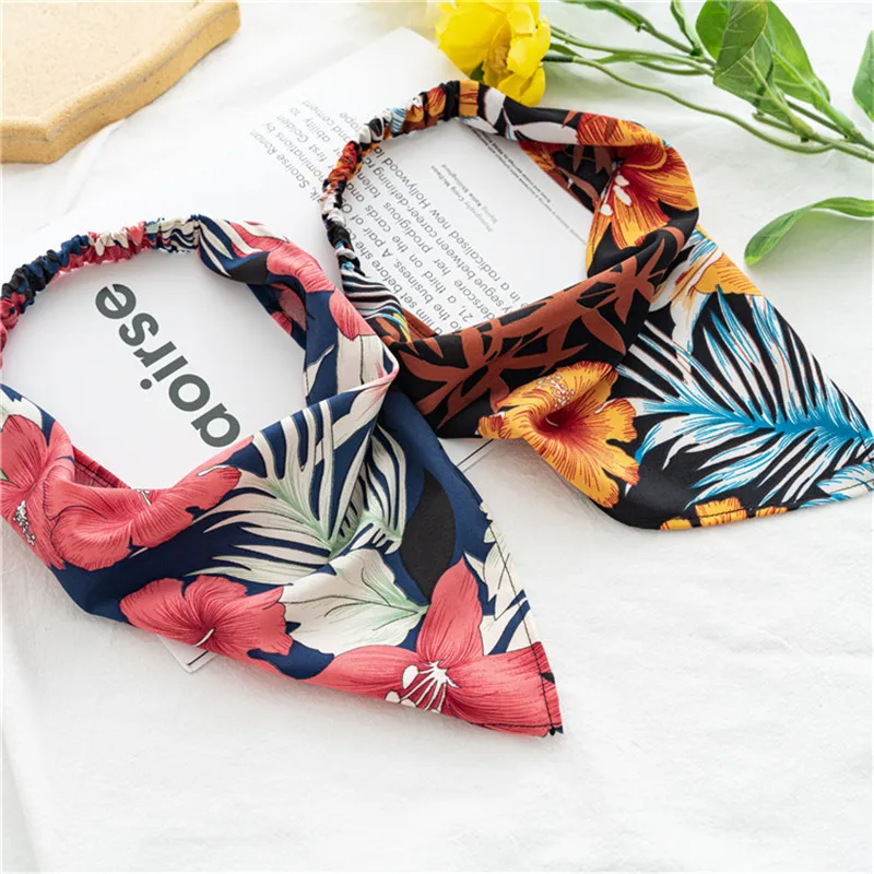 Женская повязка на голову Ruoshui, в стиле бохо, треугольная, с цветочным принтом, тюрбан, эластичная повязка для волос, аксессуары для волос, украшение для волос