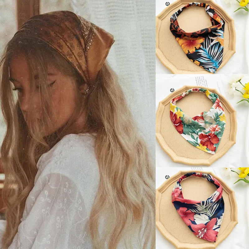 Ruoshui Женская повязка в стиле бохо для девочек, треугольный цветочный шарф для волос, тюрбан, Женская эластичная повязка для волос, аксессуары для волос, украшение для волос