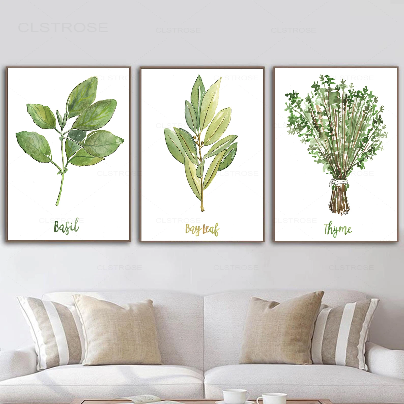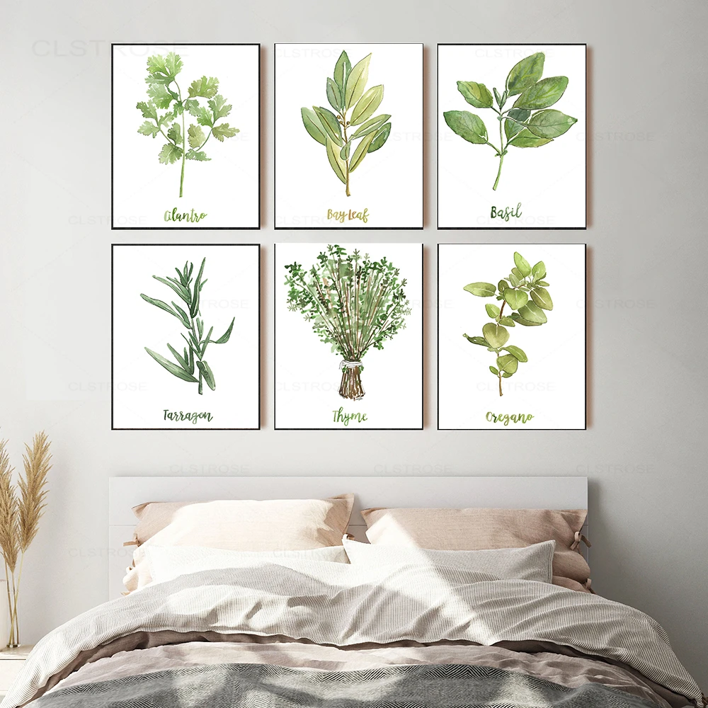 Эвкалипт, специи, травы, коллекция, искусство на стене, холст, зажим, орегано, тимьян, ботанические картины для украшения дома