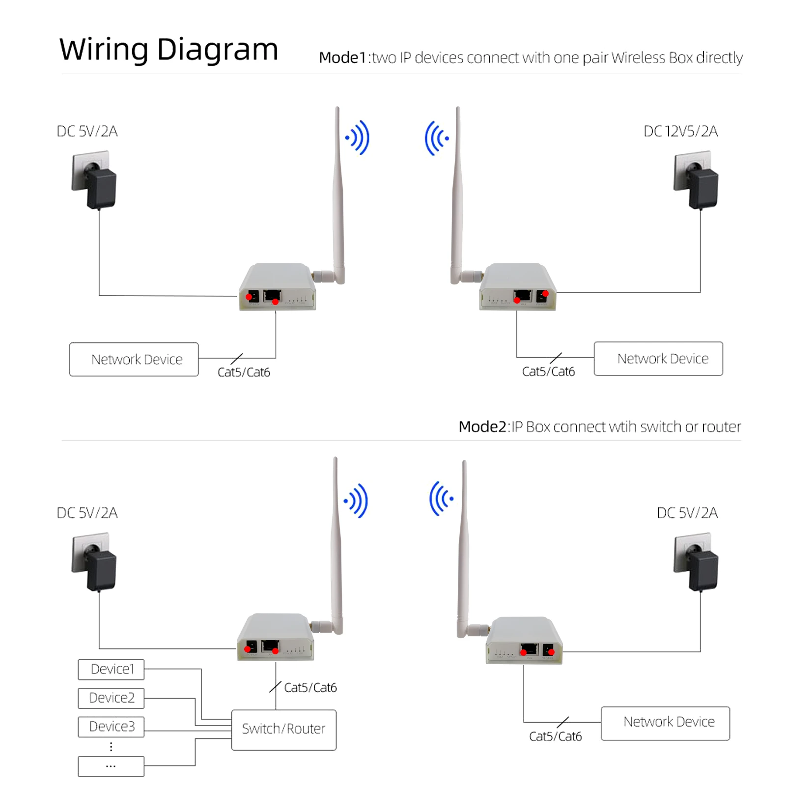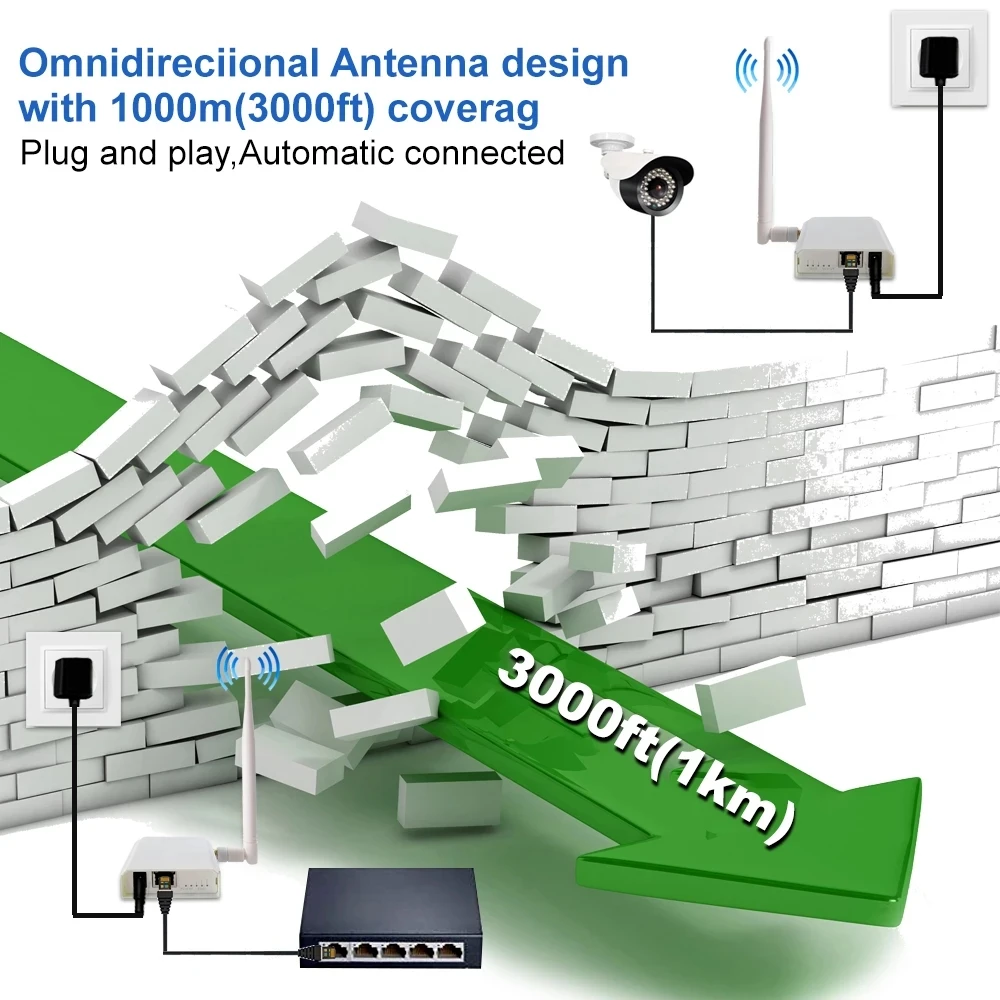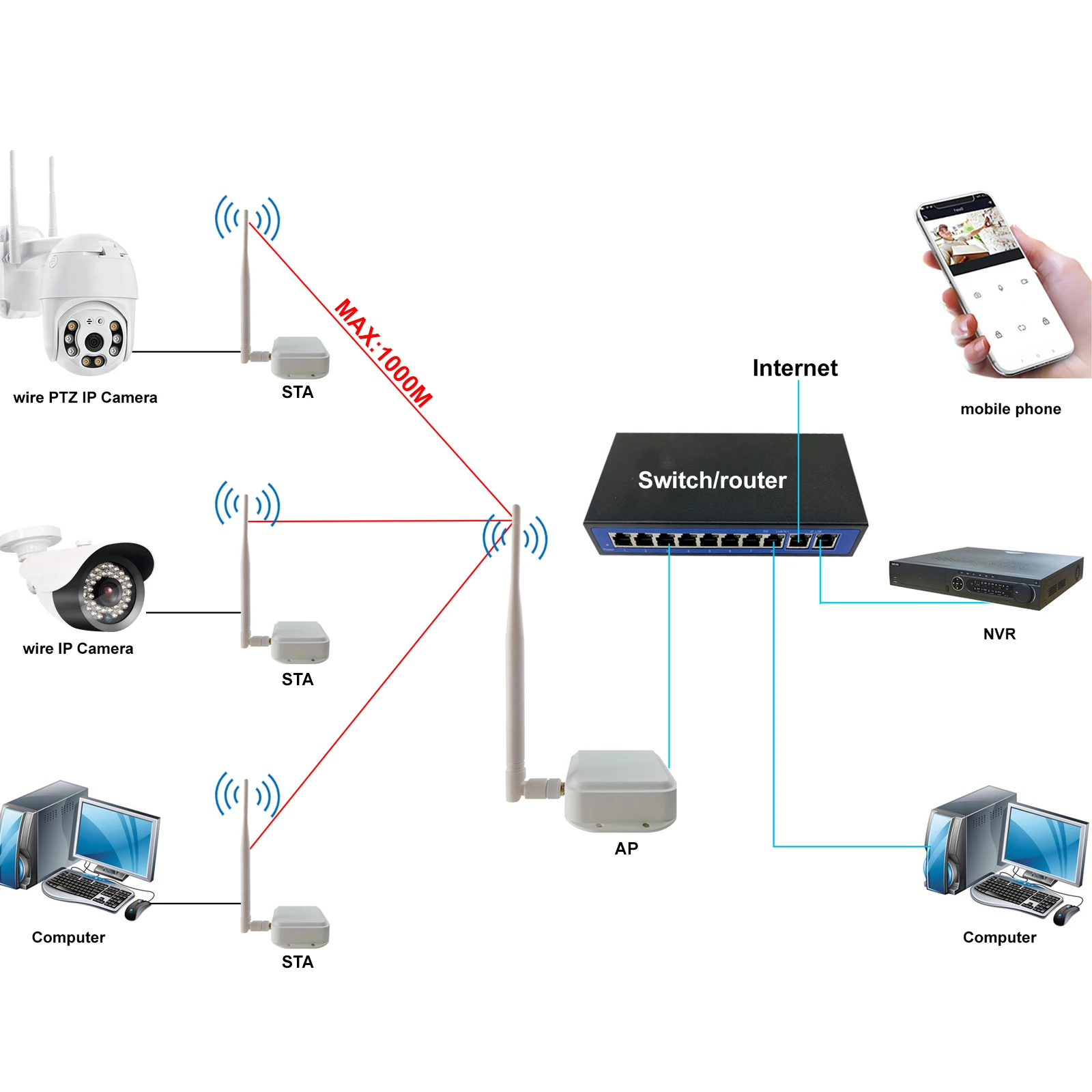 Дальний открытый беспроводной мост. Предназначен для беспроводной передачи с большим диапазоном. Это альтернатива длинному кабелю между компьютером и маршрутизатором, или NVR и ip-камерами для наблюдения за безопасностью на домиках, фермах, бассейнах и т. д. С большим расстоянием до 3000 футов в открытом пространстве.
