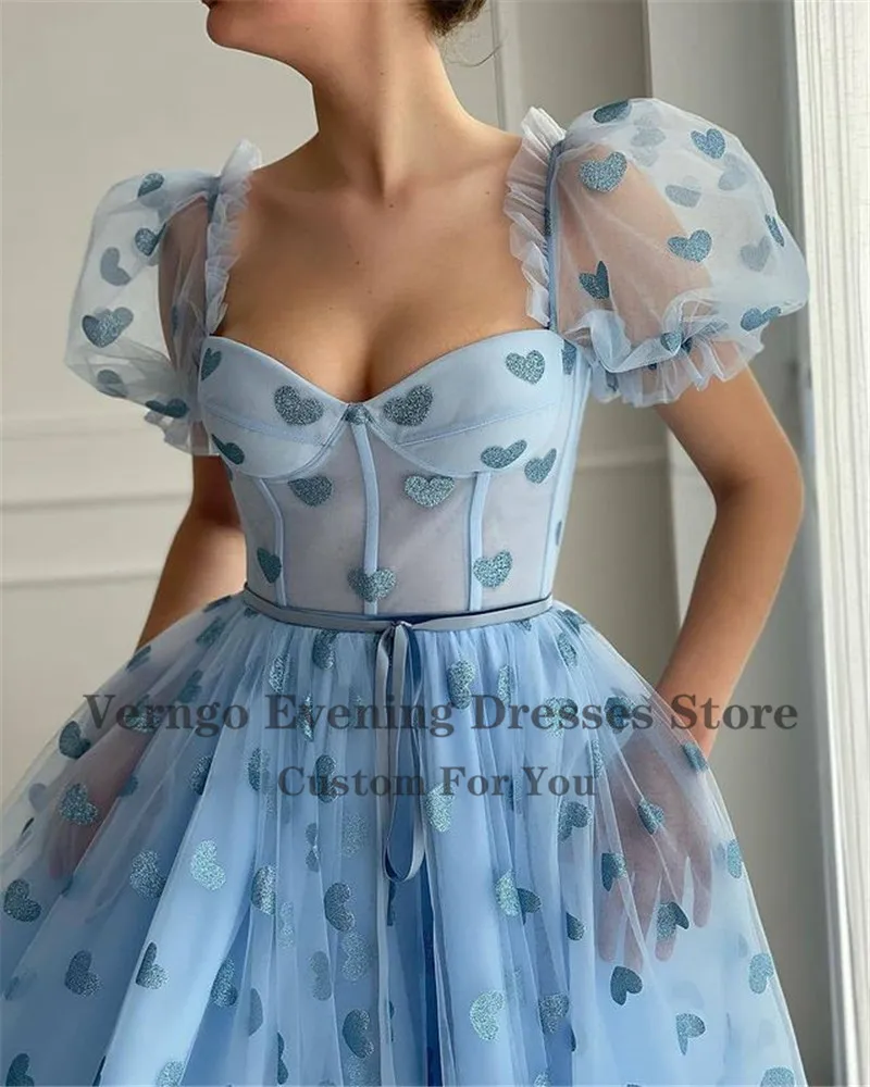 Женское длинное вечернее платье Verngo, светло-синее Тюлевое ТРАПЕЦИЕВИДНОЕ ПЛАТЬЕ С Пышными короткими рукавами, поясом и карманами, 2021