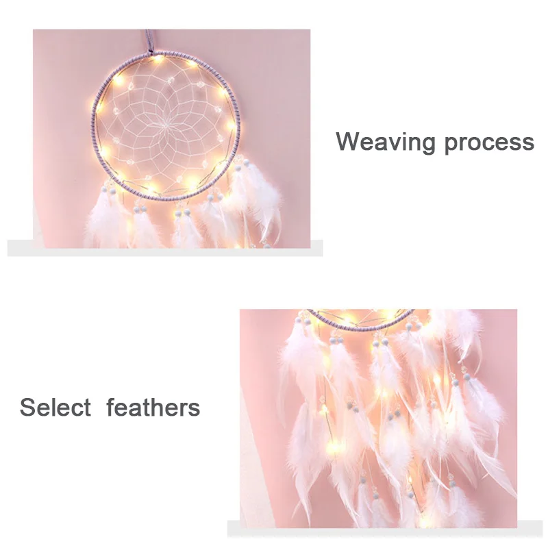 Девушка сердце Ловец снов Национальный Перьевые Украшения кружева ленты перья завернутые огни девушки декор комнаты Ловец снов