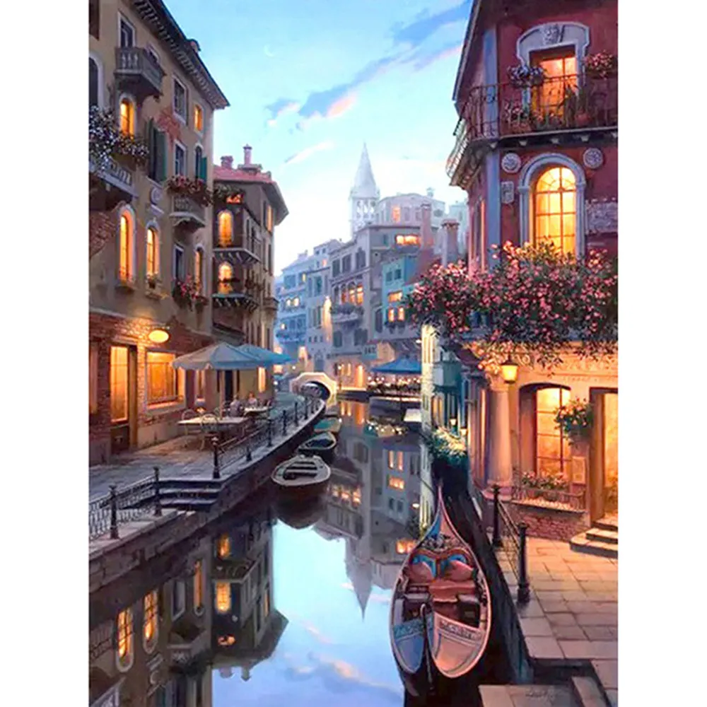 Алмазная картина 5D "сделай сам", квадратнаякруглая вышивка с изображением водного города, подарок ручной работы, украшение для дома, мозаика, творческое искусство