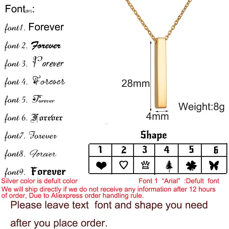 Пожалуйста, обратите внимание:Frist: Выберите понравившийся вам стиль шрифта.Во-вторых: при оплате Оставьте свое имя или слова (максимум 15 байт) и шрифт.(Например: Belle, шрифт 5)Как оставить сообщение, пожалуйста, проверьтеИзображение нижеПримечание:После оплаты ваш заказ будет отправлен в течение12 рабочих часов.Время доставки:ЭкономикаВремя доставки:10-25 рабочих днейСтандартное время доставки:8-20 рабочих днейВремя экспресс-доставки:1-3 рабочих дня.Информация:Материал: нержавеющая сталь316 # новейший материал стальной конструкцииЛучшее качествоНе выцветаетЛучшая коррозионная стойкостьМожно носить купание и плавание, изделие никогда не выцветает! Не вызывает аллергии!