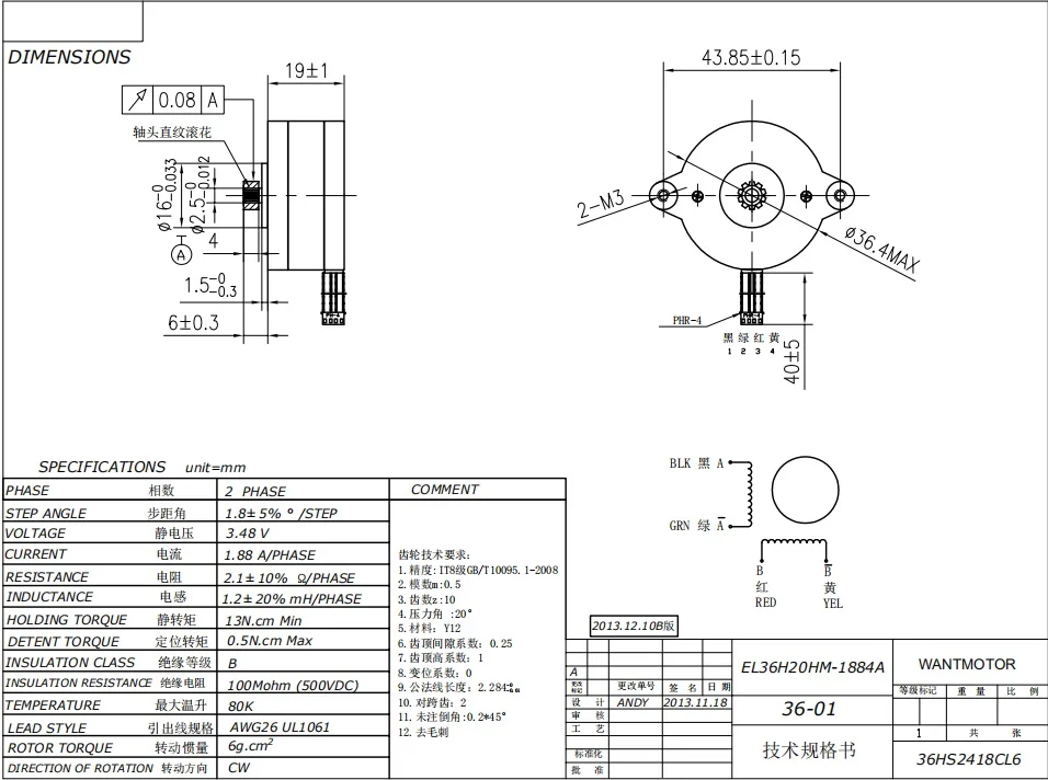 Шаговый двигатель Wantai 3 шт., шаговый электродвигатель 36BYGH218, 13 нм (18 унцийдюйм), 1,88 А, 19 мм, CE, ROHS, ISO, ЧПУ