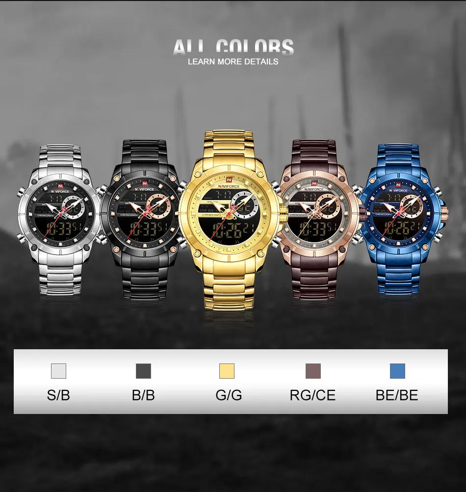 Часы NAVIFORCE мужские, спортивные, водонепроницаемые, из нержавеющ...