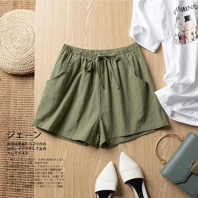 2022 Новые популярные летние повседневные хлопковые льняные шорты для женщин, большие размеры, шорты с высокой талией, модные короткие штаны, уличные женские шорты