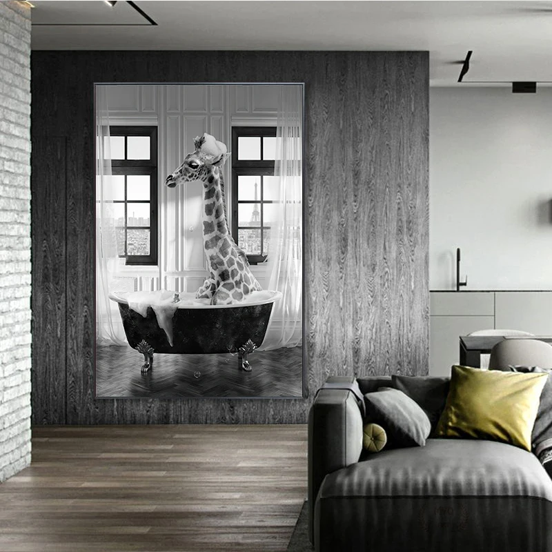 Скандинавская черно-белая Картина на холсте постеры с животными Жираф панда детская Настенная картина для ванной Декор для дома