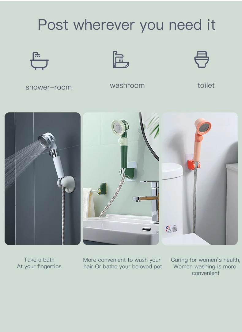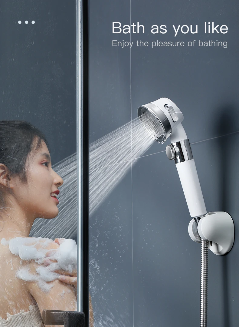 Насадка для душа под давлением с функцией экономии воды под высоким давлением, перфорированный свободный кронштейн, шланг, регулируемый, аксессуары для ванной комнаты, набор для душа