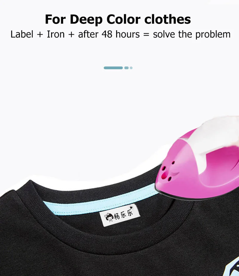 1. Подходит для хлопка/модальной ткани. 2. Пожалуйста, подтвердите, что у вас достаточно практики, штамп не может удалить после того, как вы запечатали. 3. Только шаблон A2/V2/S1/M6/M7 может добавить номер телефона. 4. Для достаточно ясности, пожалуйста, укажите имя в 12 буквах