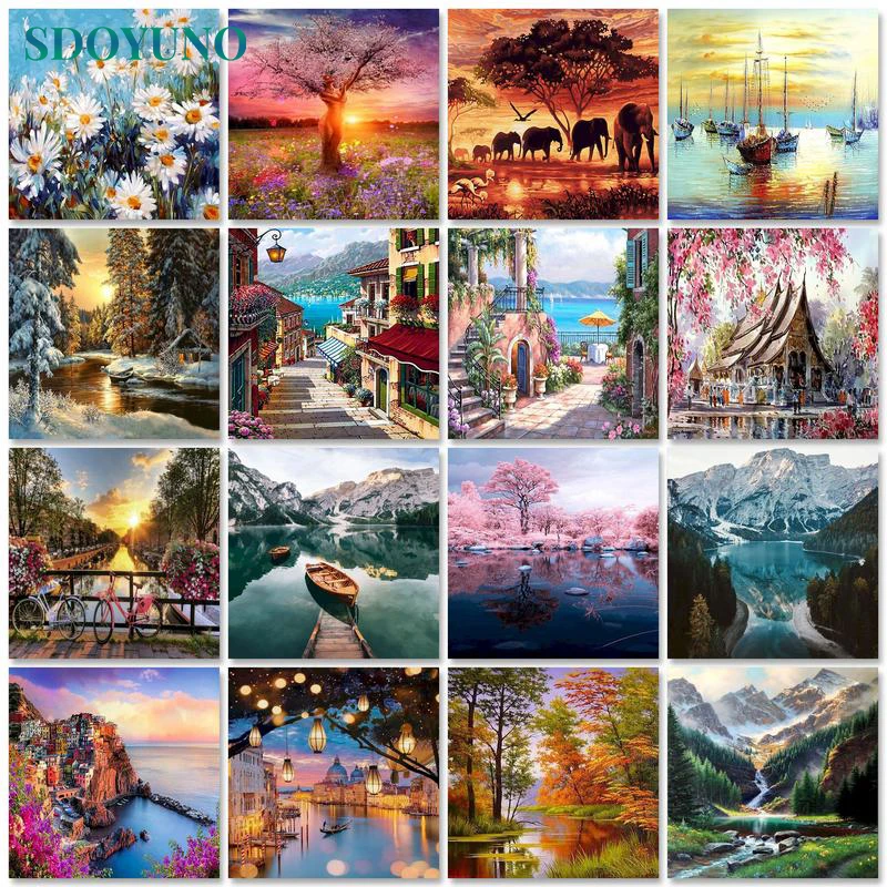 Пейзажная краска по номерам SDOYUNO, самодельная масляная краска по номерам на холсте, декоративное оформление без рамки, 60x75 см