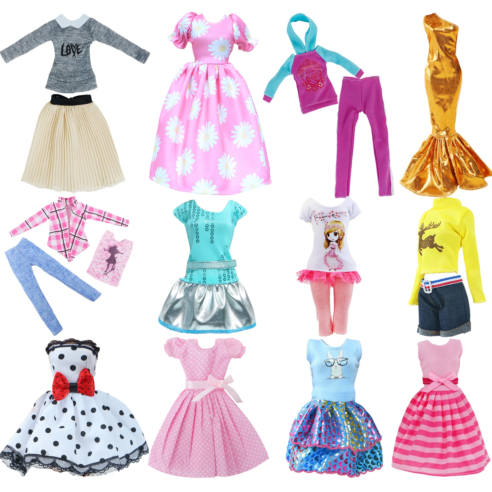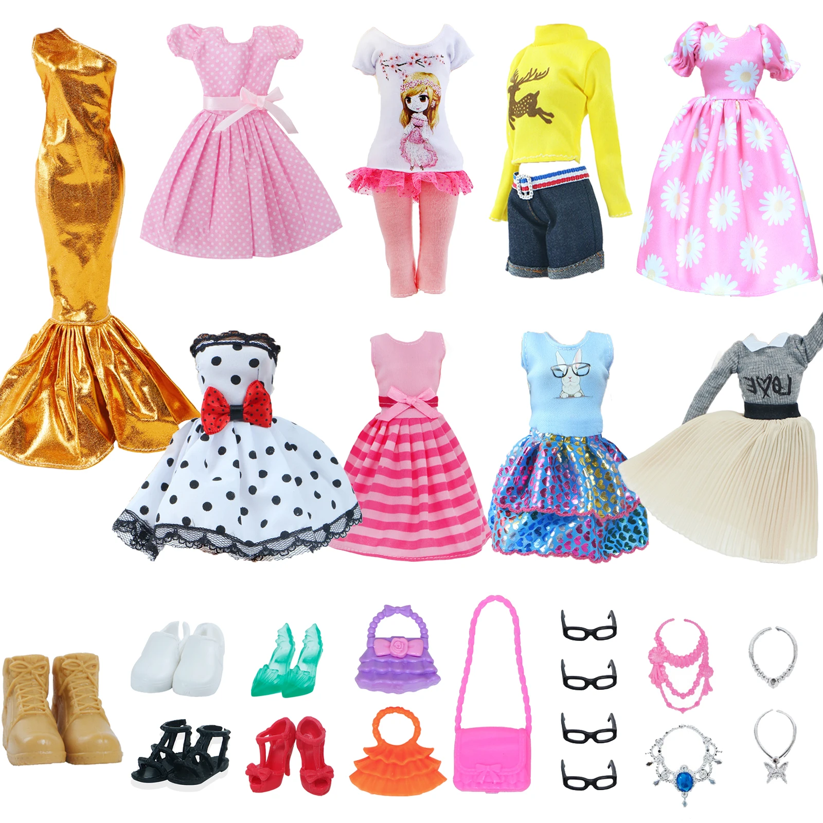 Наряд #2 Pcs: включает 2 стиля одежды, как показано на изображении.# 5x обувь: включая 5 стилей обуви, как показано на изображении.# Случайный 32 шт.: 10x платья + 10x туфли + 6x ожерелья + 4x очки + 2x сумочки (все аксессуары выбраны случайным образом.)# Другое, что вы видите, это то, что вы получаете.