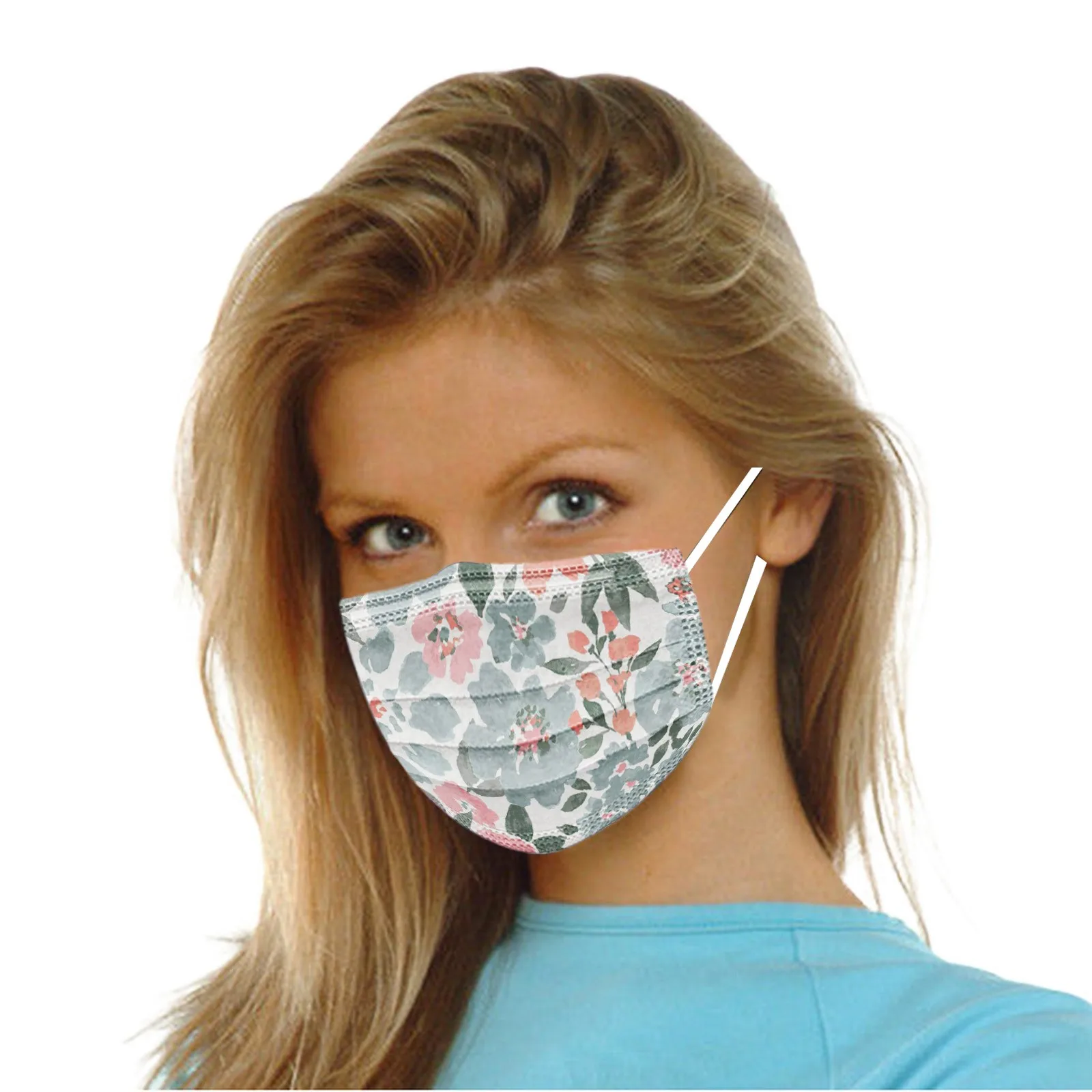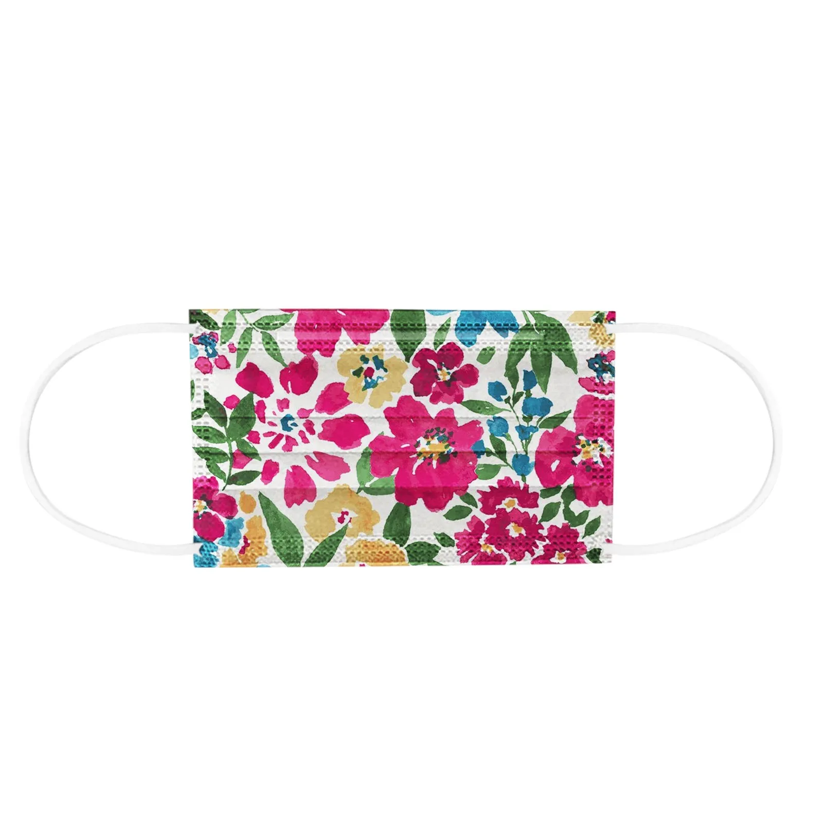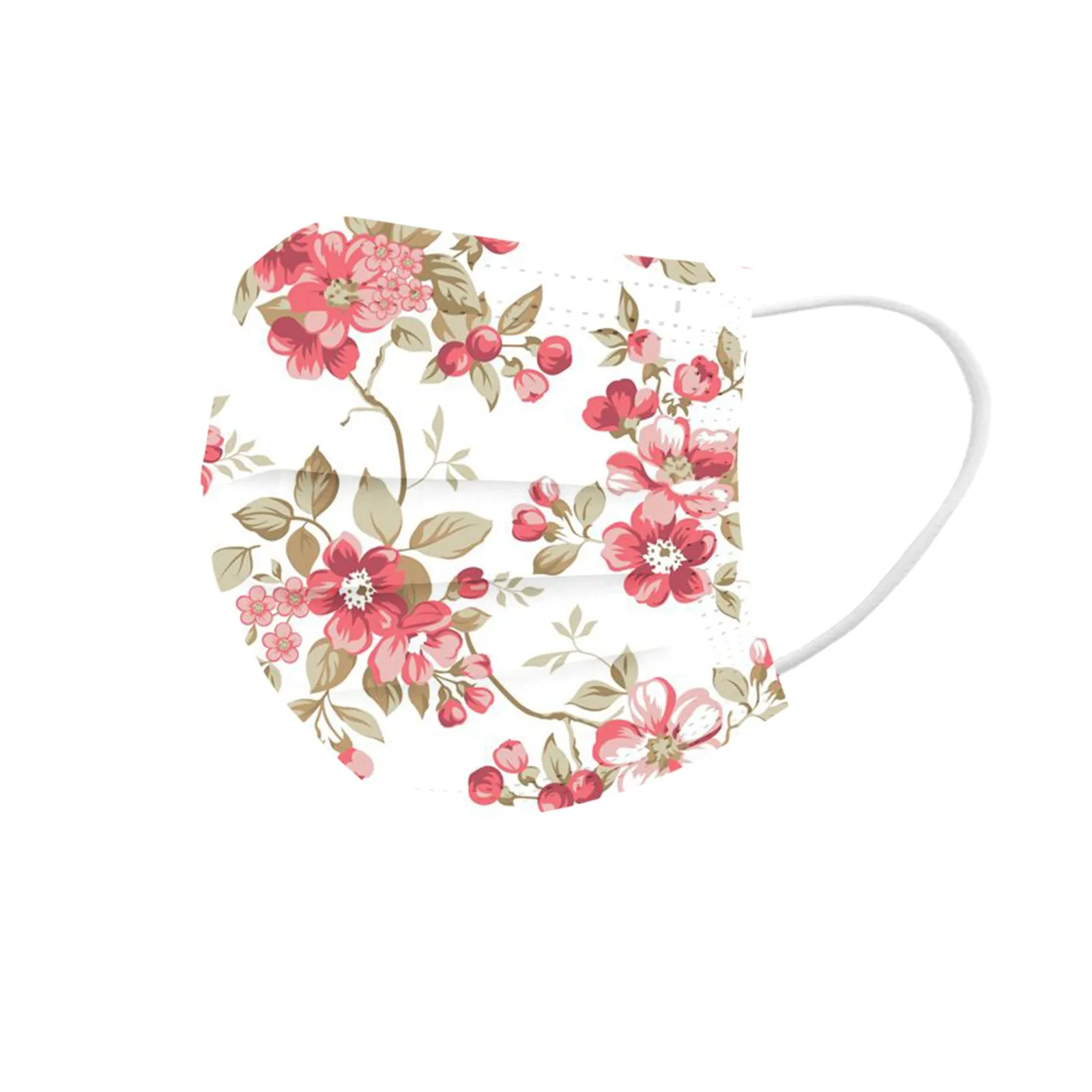 Маска для лица одноразовая трехслойная с цветочным принтом, 10 шт.
