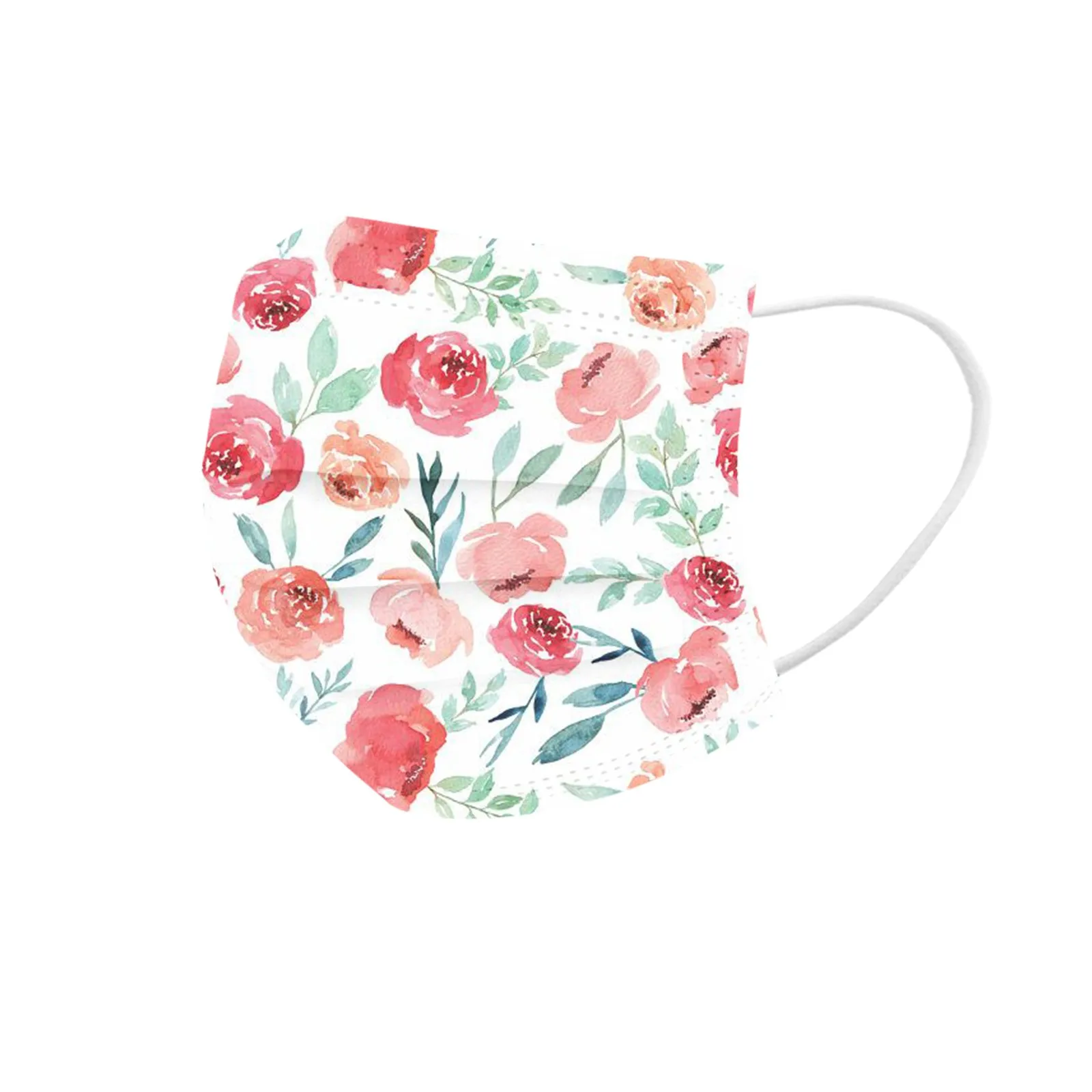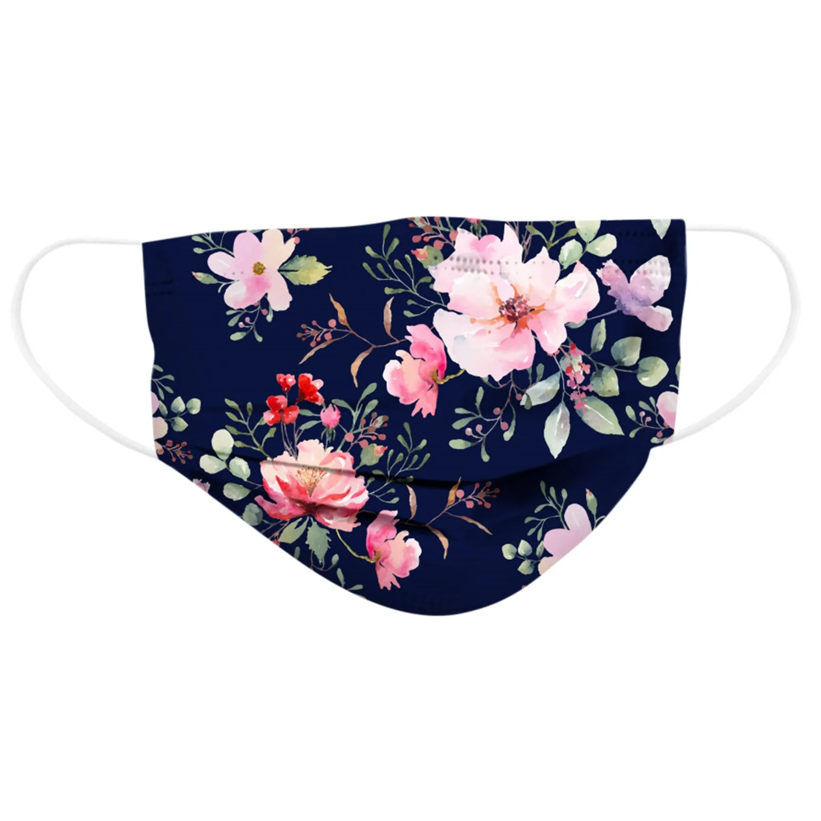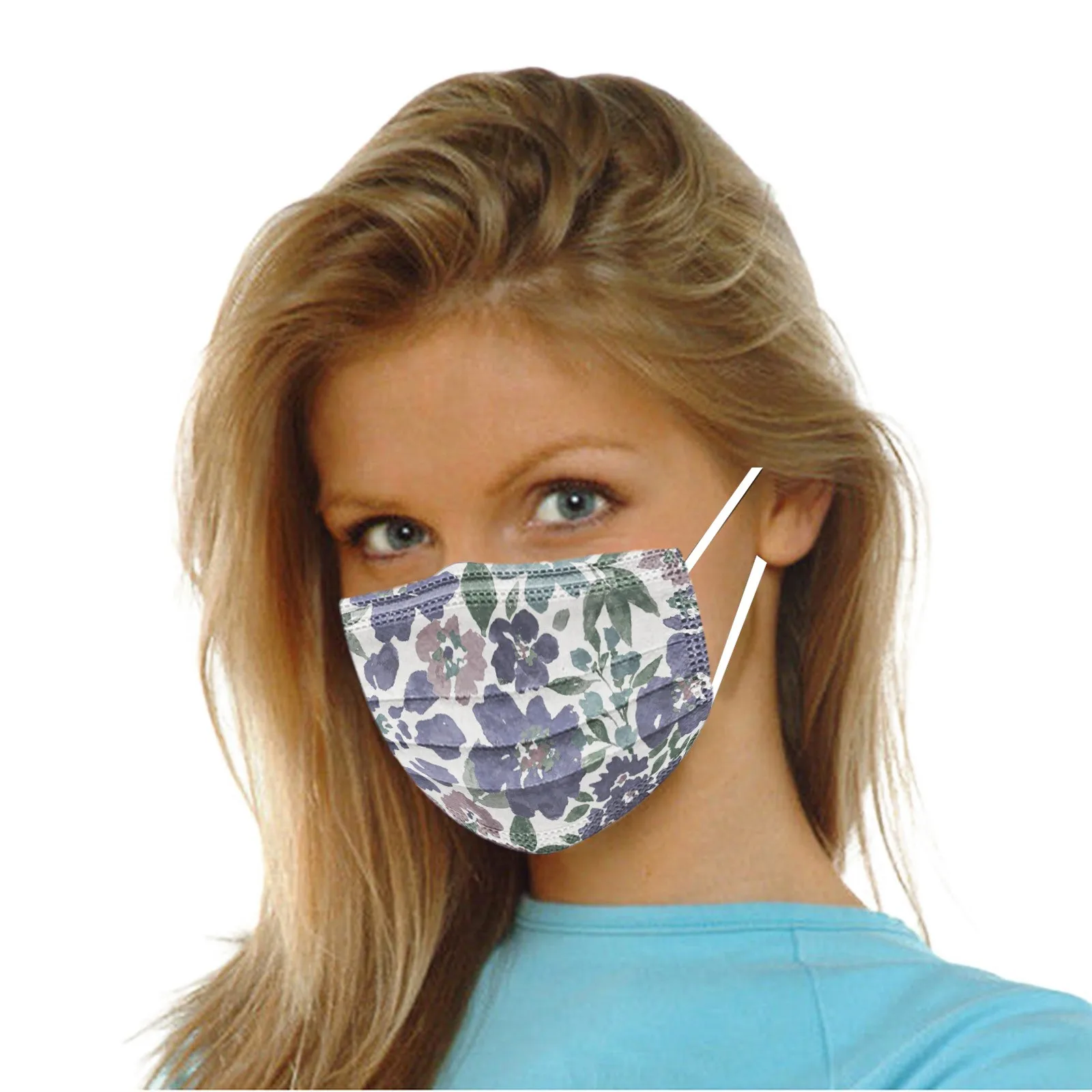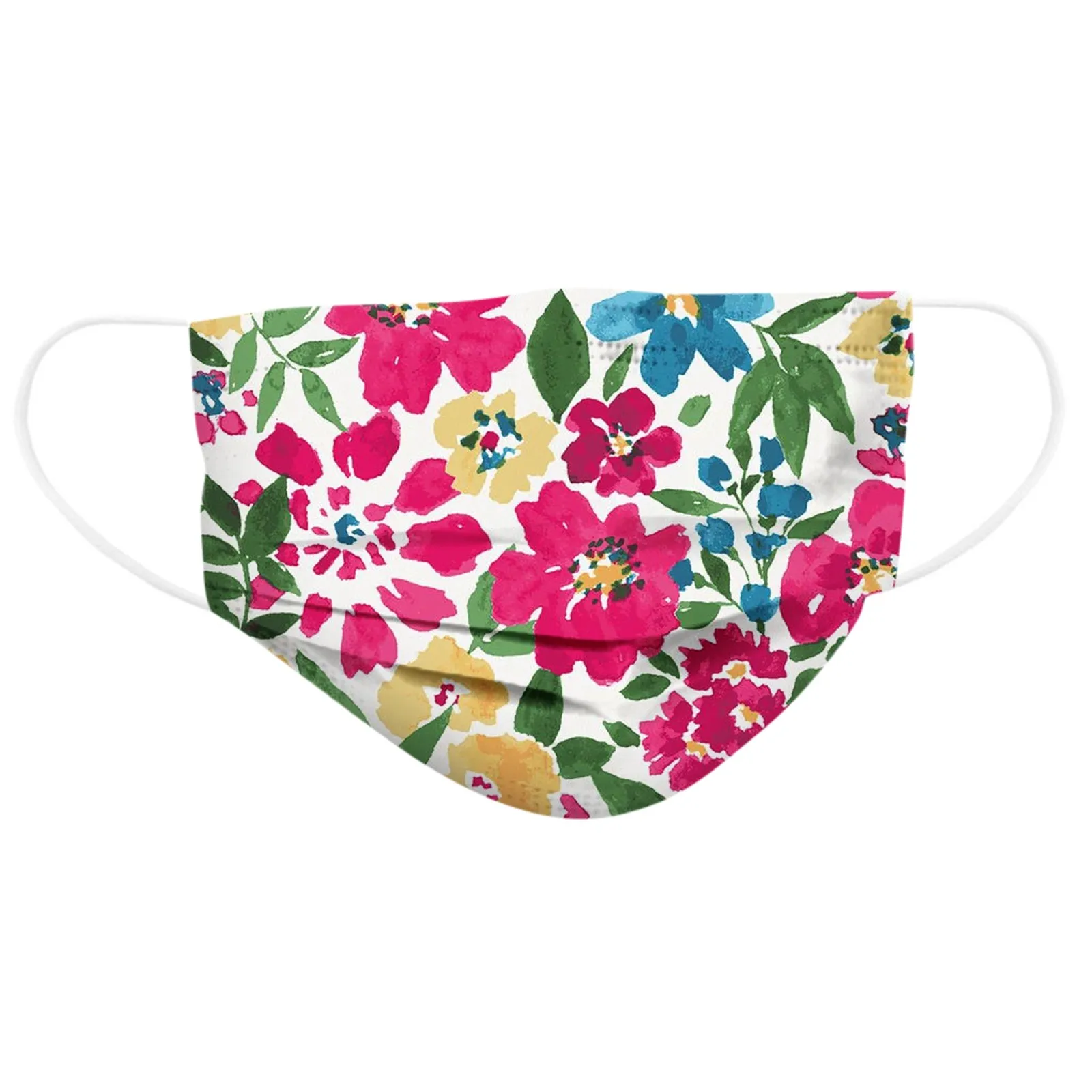 Маска для лица одноразовая трехслойная с цветочным принтом, 10 шт.