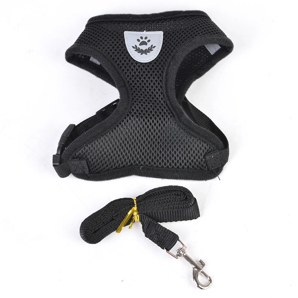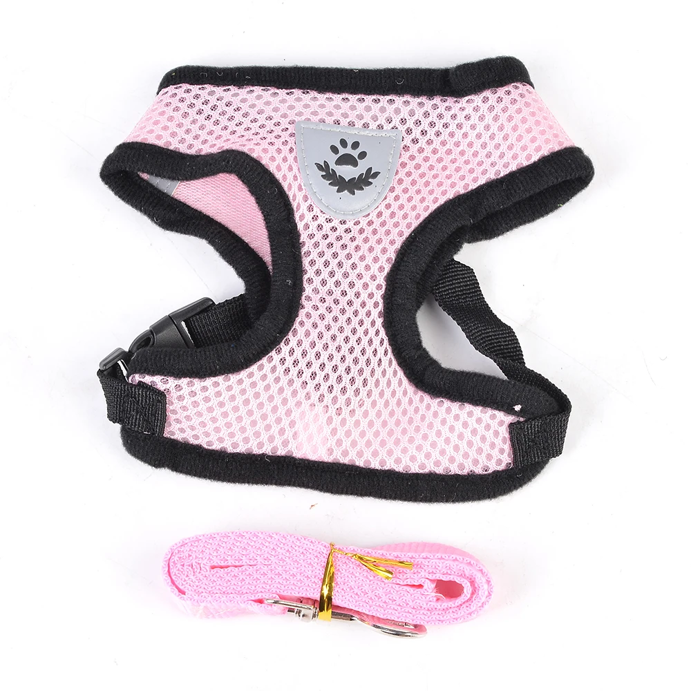 Собачья шлейка с поводком лето домашнее животное Регулируемый светоотражающий жилет Прогулки поводок для щенка из полиэстера сетчатая упряжь для малых и средних собак