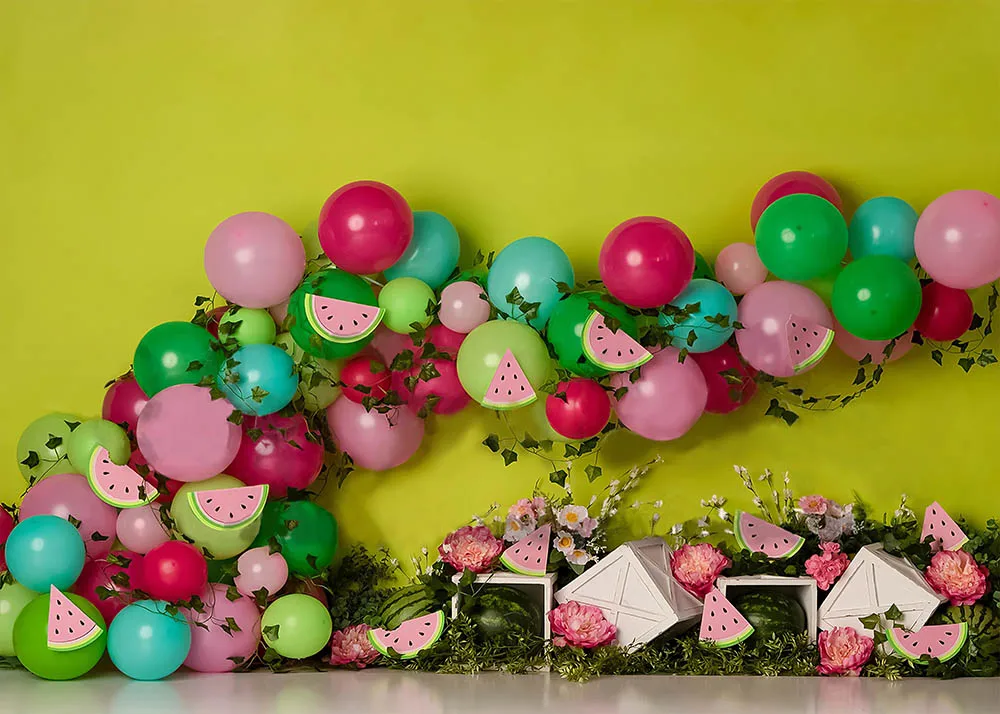 Фон для фотосъемки с изображением фруктов, арбуза, воздушных шаров, однотонная стена, цветок, детский торт, разбивка, день рождения, портрет, фон для фотостудии