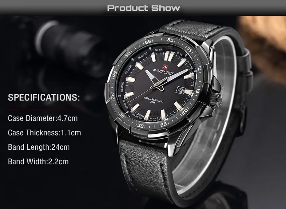 Часы NAVIFORCE Мужские кварцевые, модные деловые Роскошные водонепр...